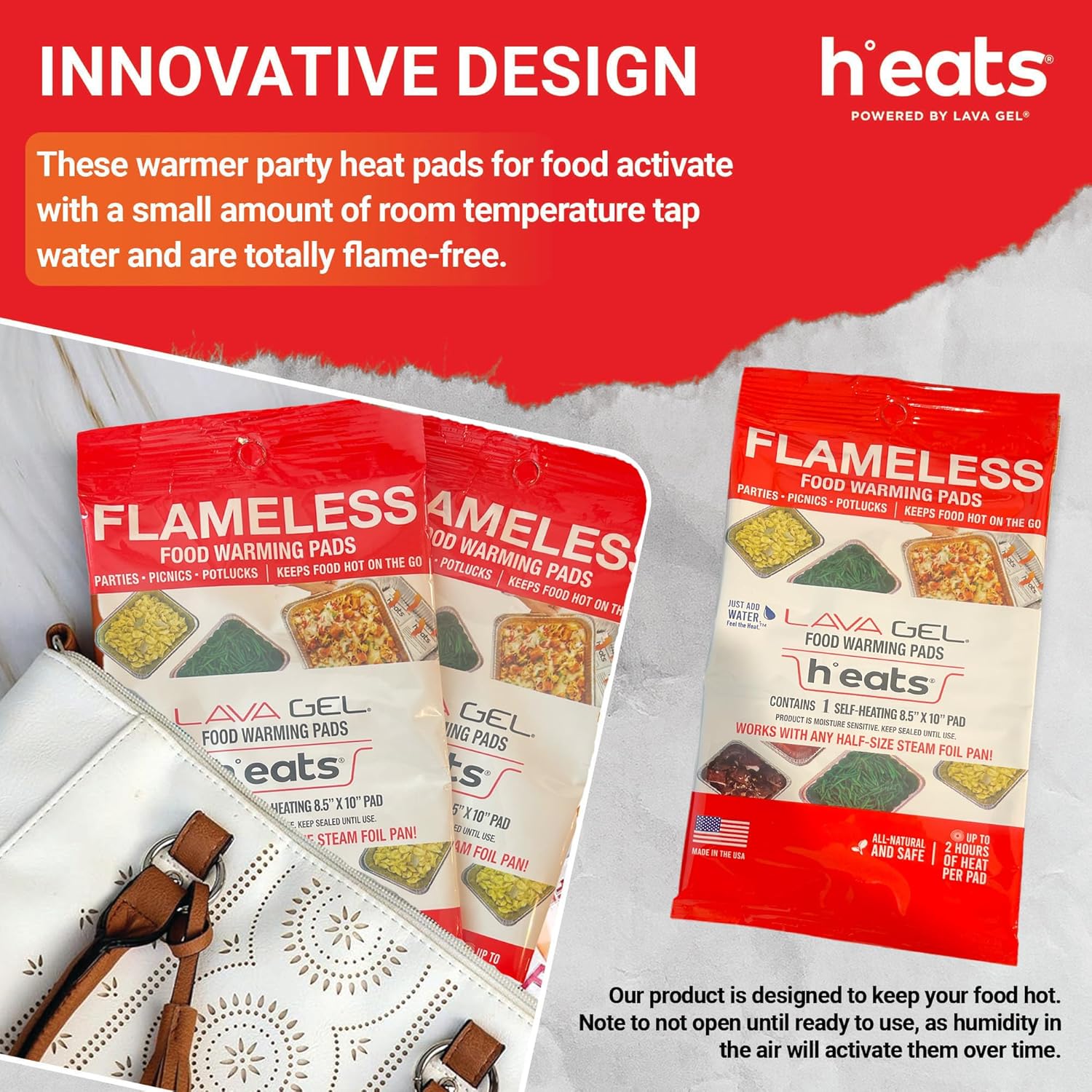 Disposable Food Warming Pads: Available in packs of 2, our h°eats pads provide a convenient solution for all your food warming needs, whether for parties, potlucks, or daily kitchen use, ensuring your meals stay deliciously warm for extended periods.