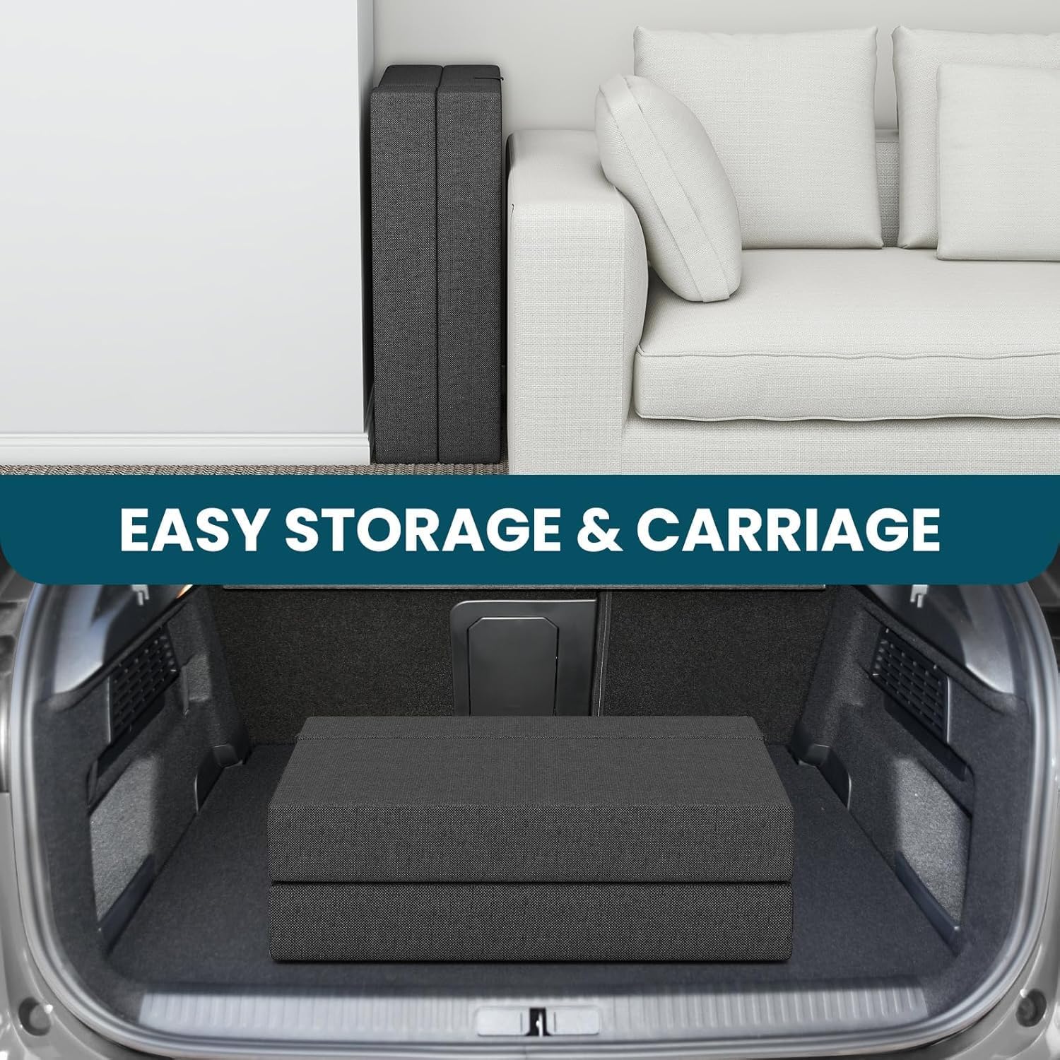 Easy Maintenance and Storage – No need for cumbersome bed frames or dedicated storage spaces. This foldable bed mattress folds up neatly, making it a breeze to store under a bed, in a closet, or even behind a door when not in use. Plus, its soft touch jacquard cover can be removed and thrown in the wash to get rid of any pesky accidental stains. (Unfolded back section must be laid against a wall to turn the mattress into a chair).