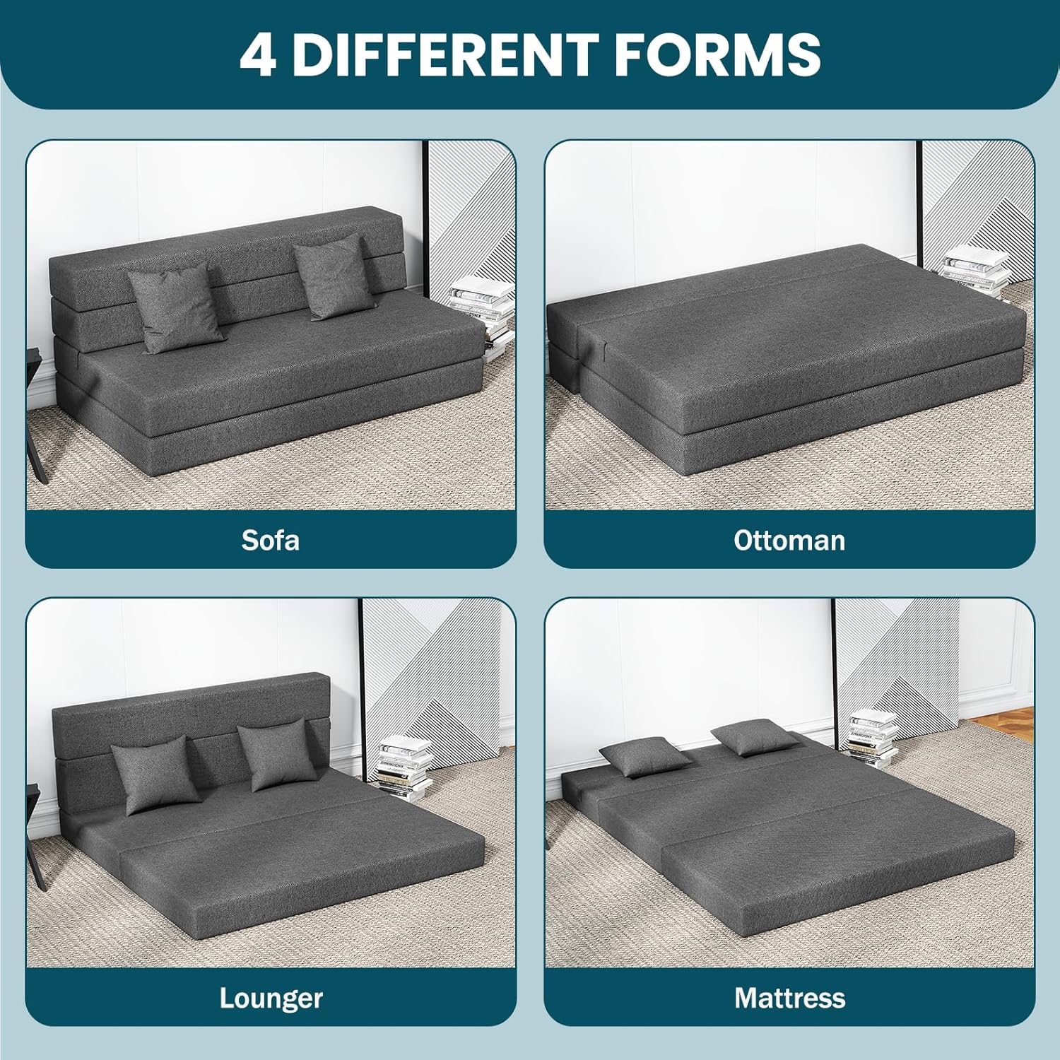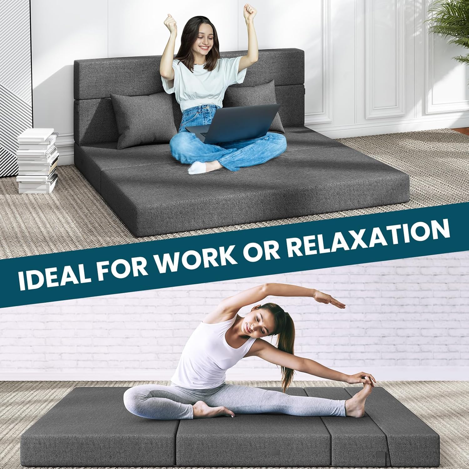 Wide Applications Foldable Mattress – Simply, unfold your folding mattress on the floor in the room, mobile home, or tent to get a comfortable night’s sleep. The compact sleeping solution accommodates all the sleeping needs. It’s the go-to floor mat for watching TV in the living room, RV camping accessory for star gazing, and guest mattress for sleepovers. From chair to seat and sleeper, the options are limitless.