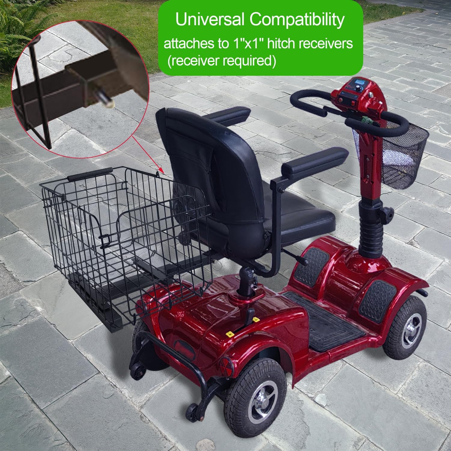 Universal Compatibility – Securely attaches to 1″x1″ hitch receivers on Pride, Go-Go, Golden & most mobility scooters/power chairs (receiver required).