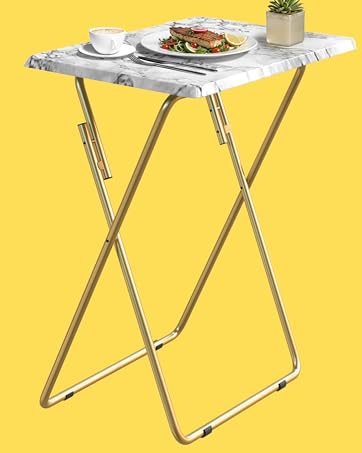 Foldable Table with No Assembly Needed, Small Foldable Coffee Table for Eating, Bed & Sofa Use –Folding Side Table – Marble Finish