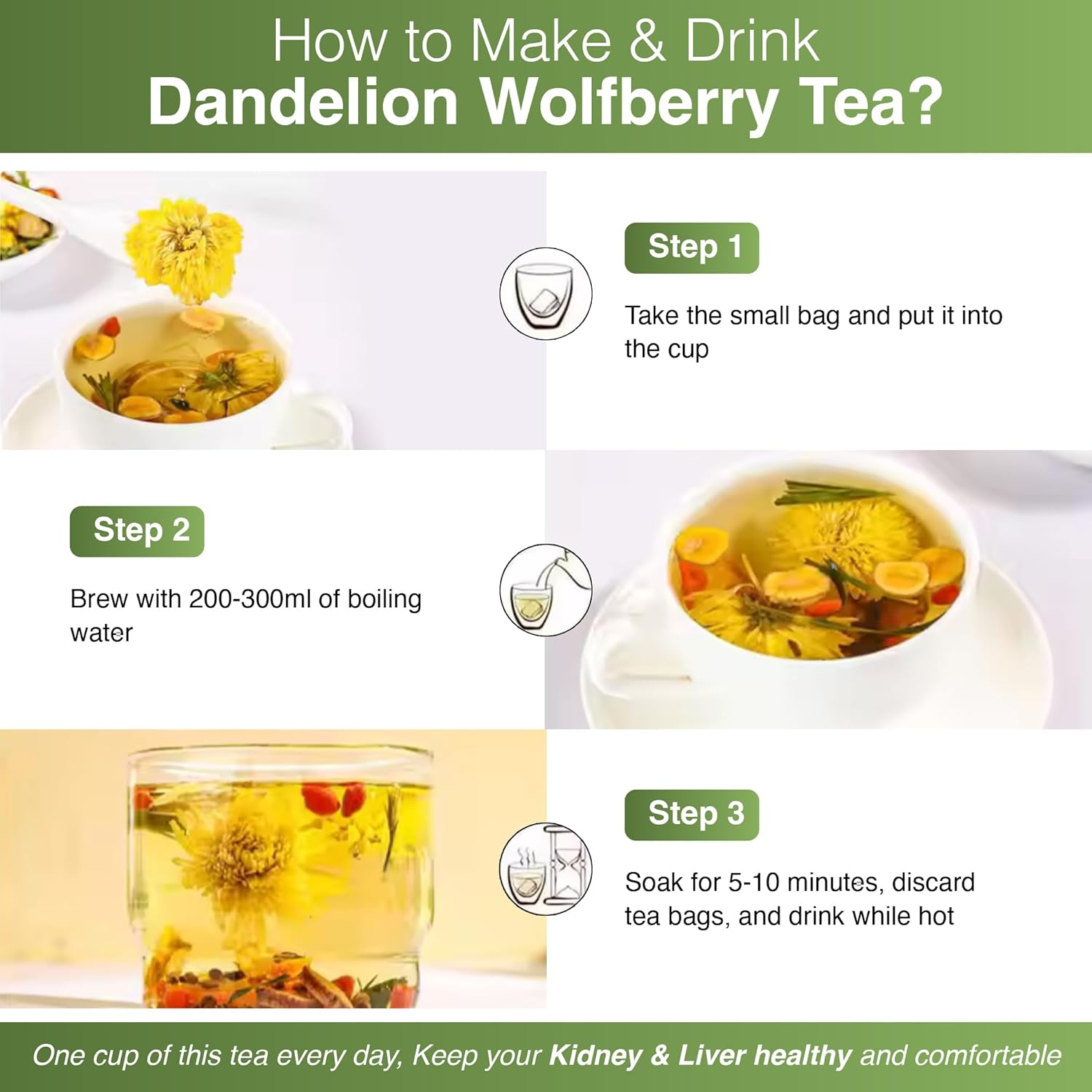 Easy to drink -individually packed 30 tea bags, this dandelion wolfberry tea is easy to brew at home/office/on the go. Brew tips: To enhance its flavor, you can also add some honey or lemon according to your preference.