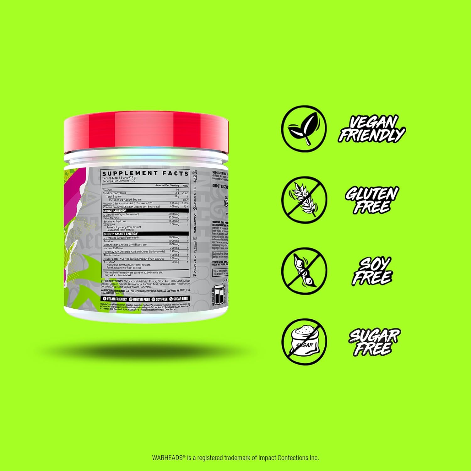 GHOST Legend Pre-Workout Powder, Warheads Sour Watermelon – 30 Servings – Pre-Workout for Men & Women with Choline, L-Citrulline, & Beta Alanine for Energy & Focus