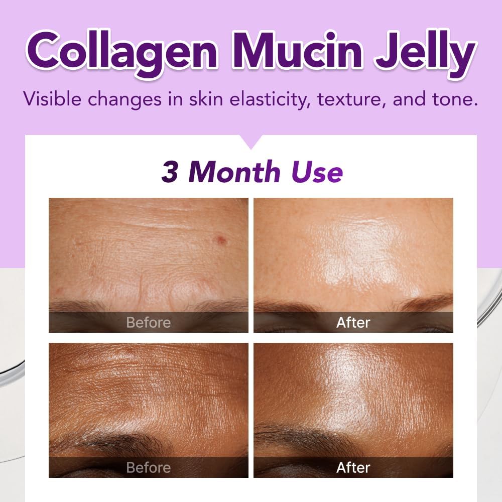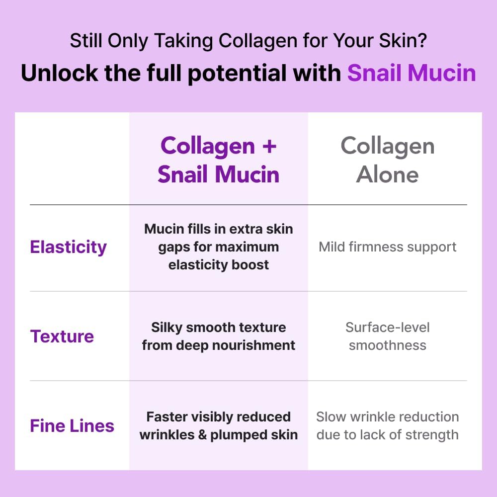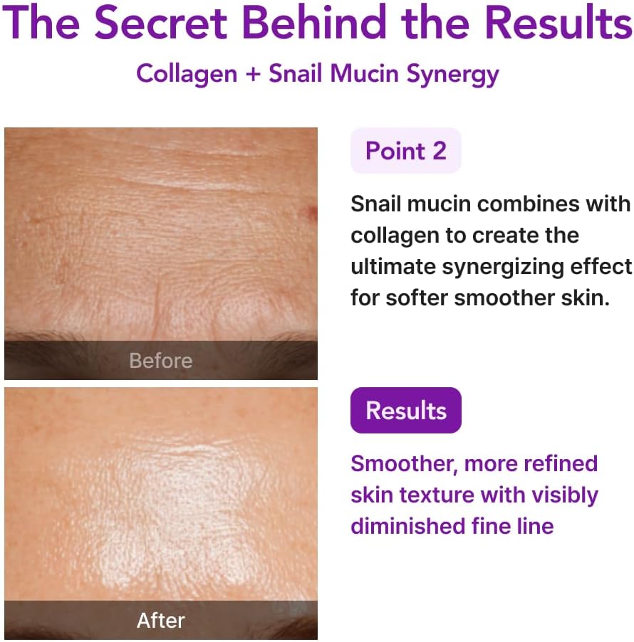 SNAIL MUCIN + COLLAGEN BOOST : Smooths wrinkles, improves skin elasticity, and deeply hydrates for a youthful glow
