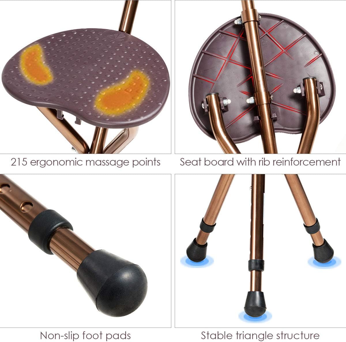 Lightweight but Heavy-duty Cane Seat – Made of high-quality aluminum alloy, this cane seat is sturdy and durable without easy deformation and breakage, which weighs only 3lbs but has a high load bearing capacity of 220lbs. The stable triangular structure and non-slip foot pads ensure it not easy to roll over and prevent scratching the floor.