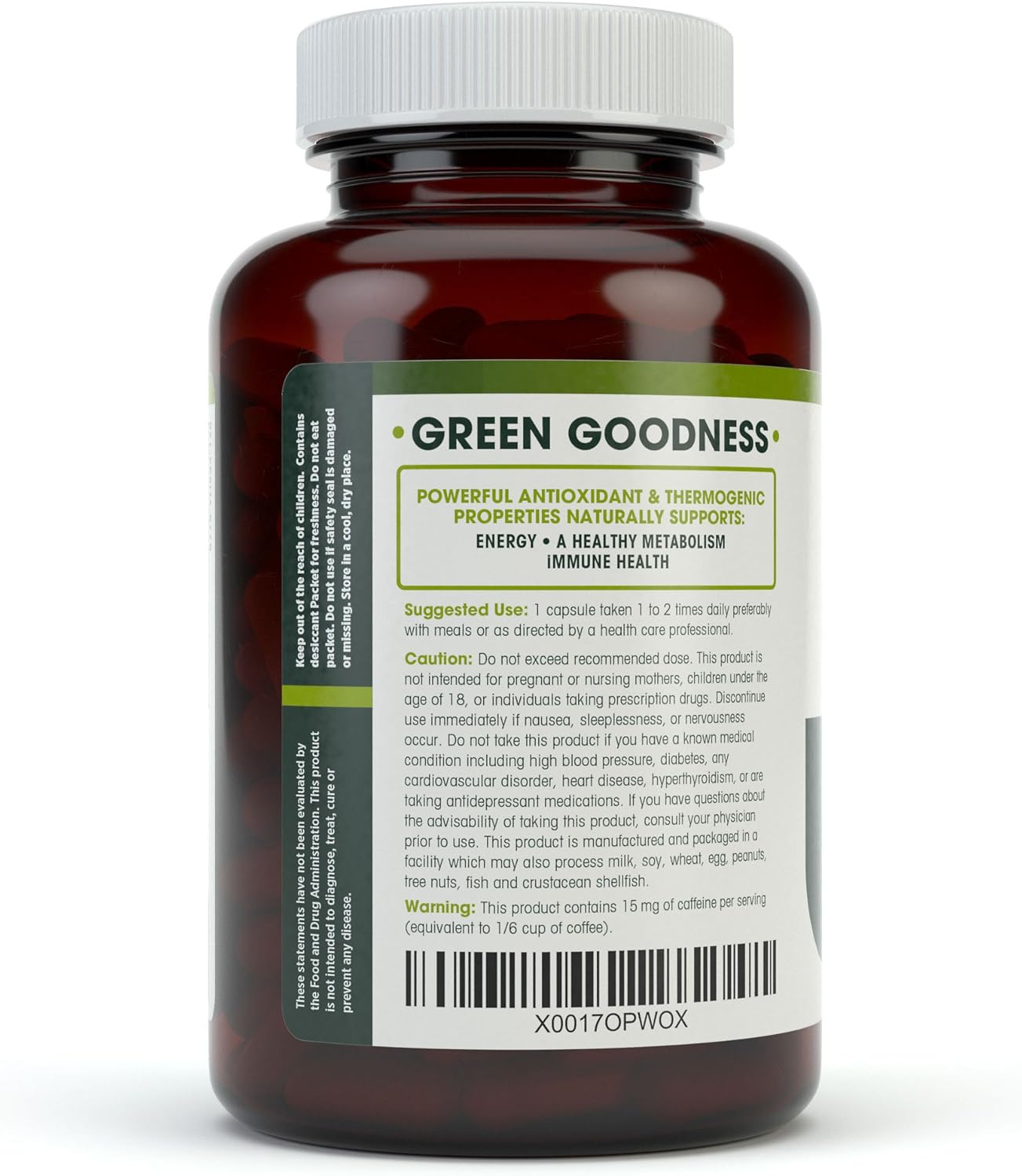 Epigallocatechin gallate (EGCG) and polyphenol catechin are naturally occurring antioxidant compounds found in green tea leaves. Studies demonstrate these antioxidants are among the most beneficial to your health: they support a variety of anti-aging benefits, including free radical suppression and healthier longevity. Formulated and manufactured to include maximum amounts of these antioxidant compounds. Your secret weapon to fight against aging and poor diet.