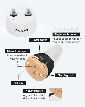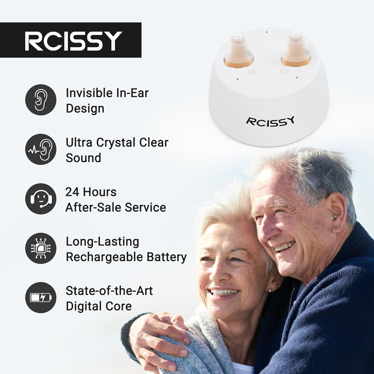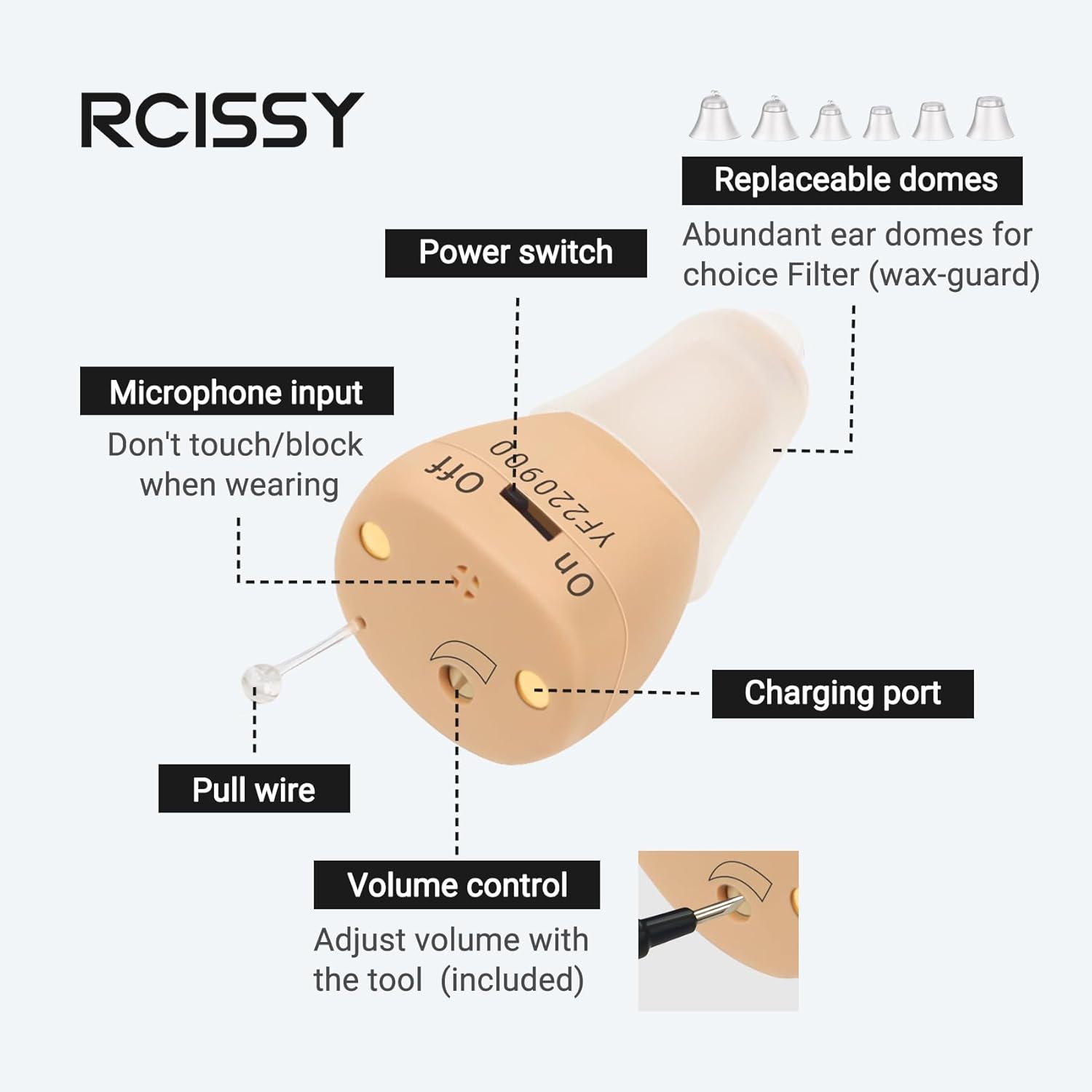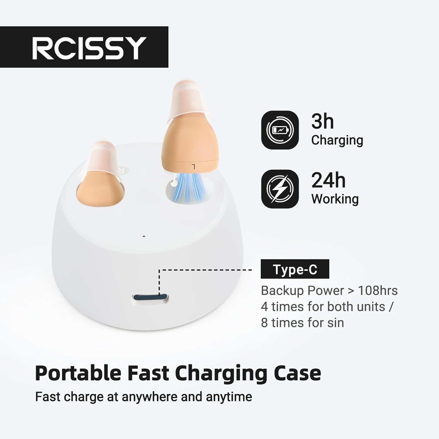 NOISE REDUCTION FUNCTION: RCISSY hearing aids with optimized sound processing, noise reduction, effective removal and filtering of background noise noise reduction function, to achieve more accurate sound communication, to help ensure that the sound amplifier provides high-quality sound transmission and voice clarity, to achieve more accurate sound transmission.