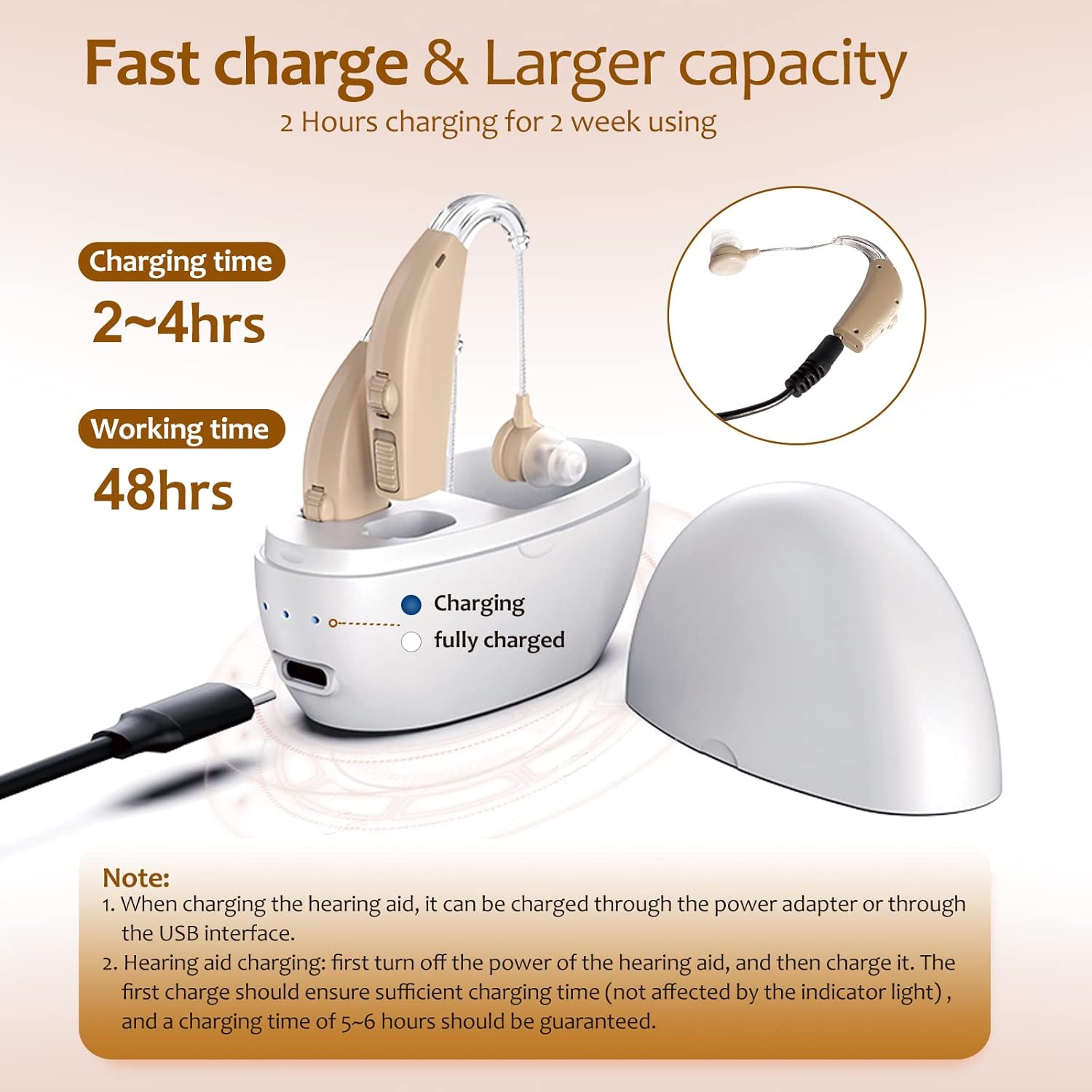 Hearing Aids For Seniors Rechargeable With Noise Cancelling Hearing Amplifier Hearing Aid With White Charging Box (White-Beige)