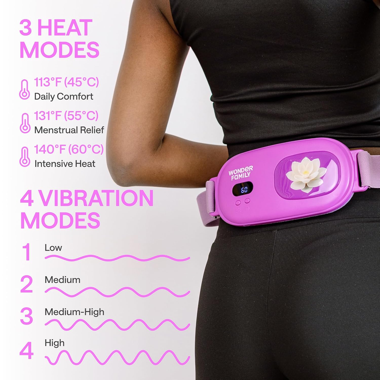 FAST CRAMP RELIEF WITH MASSAGE & HEAT: Menstrual cramps, PMS, or lower back pain? This wearable heating pad for period cramps delivers fast relief with adjustable heat and vibration. A battery operated, cordless heating solution ideal for use anytime — home, work, travel. Soft, compact and fits discreetly under clothing. No bulky wires. Perfect for cramps, bloating, sore muscles and PMS fatigue.