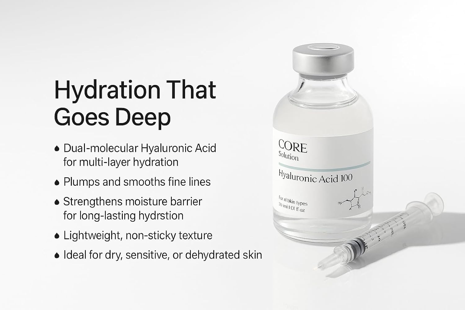 Hyaluronic Acid 100 Ampoule – Deep Hydration Serum for Dry, Dehydrated, or Sensitive Skin – 30mL + Needleless Syringe