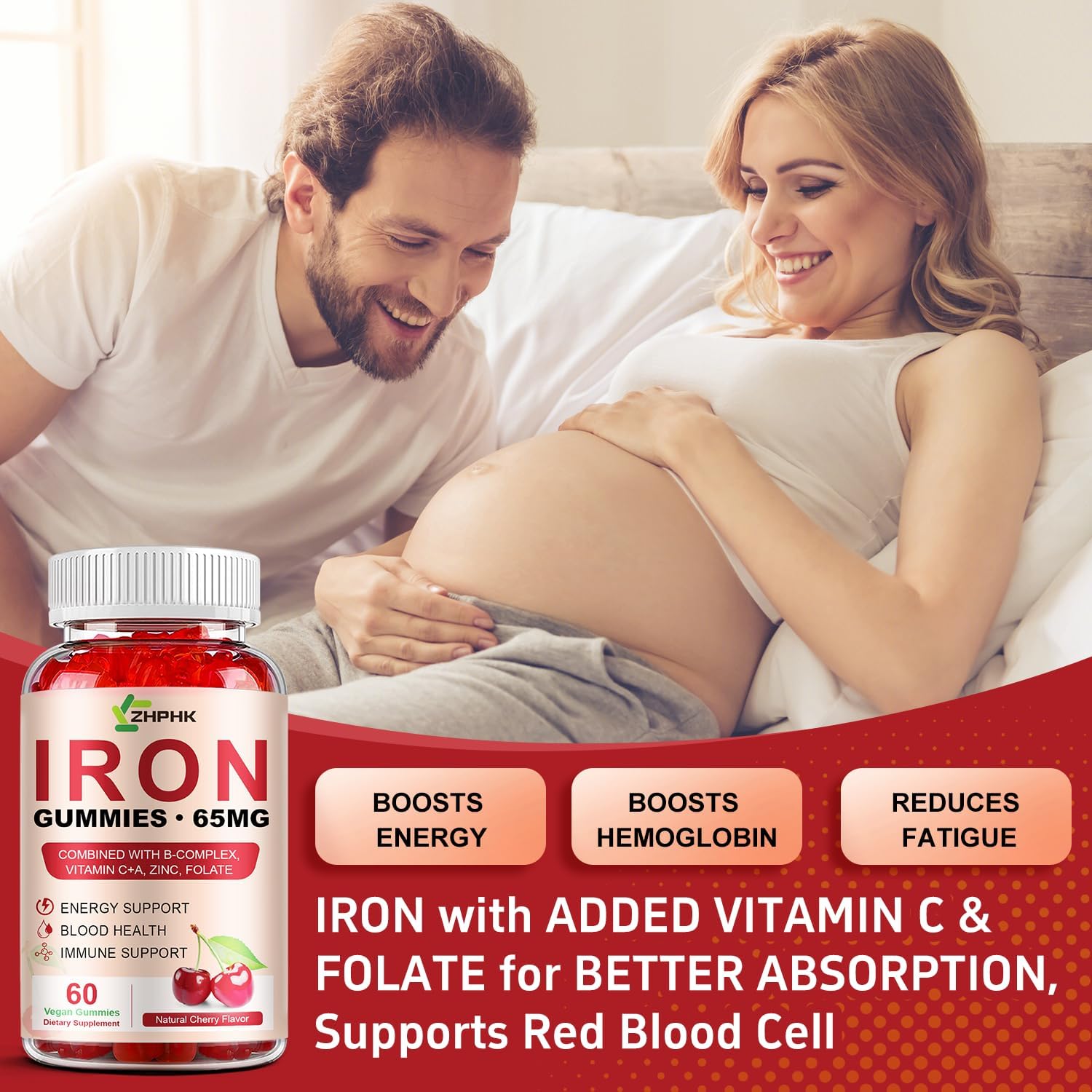 Healthy Blood & Heart Health: Cherry Iron Gummies Enriched with Folic Acid and Vitamin C. Links the benefits of iron (healthy blood) and folic acid (potentially supporting heart health) in a concise manner. And Vitamin C has been shown to improve iron absorption. This means you’ll get the most out of your supplement, supporting your body’s natural processes more effectively