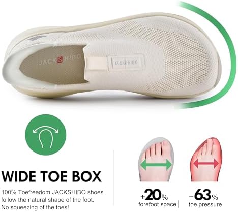 JACKSHIBO Women’s Wide Toe Box Slip in Free up Hands Shoes Arch Support Orthopedic Plantar Fasciitis Slip On Walking Sneakers with Metatarsal Pad