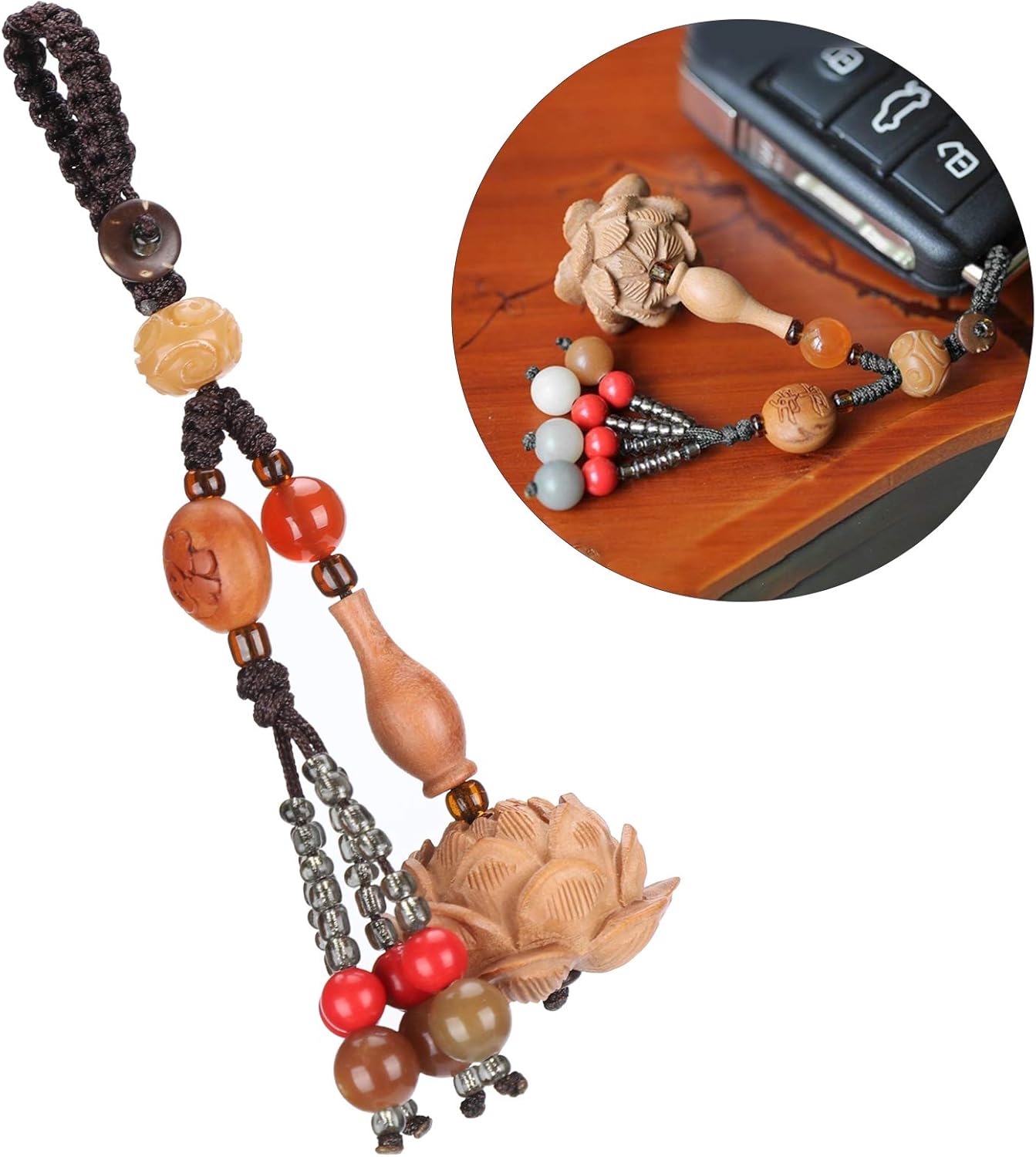 Joyzan Peach Wood Lotus Flower Keychain, Woven Key Chain Lucky Jewelry Keychain with Natural Wood Grain Fashion Accessories for Meditation Spiritual Practices Gift Women Girls Yoga Enthusiasts