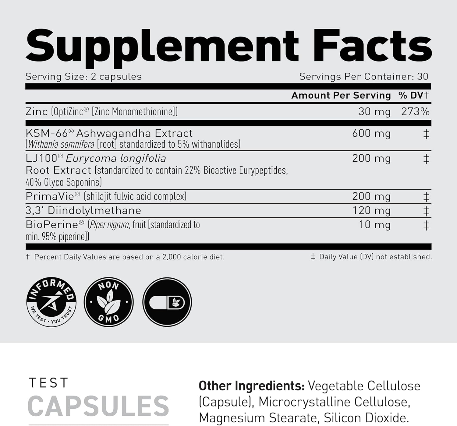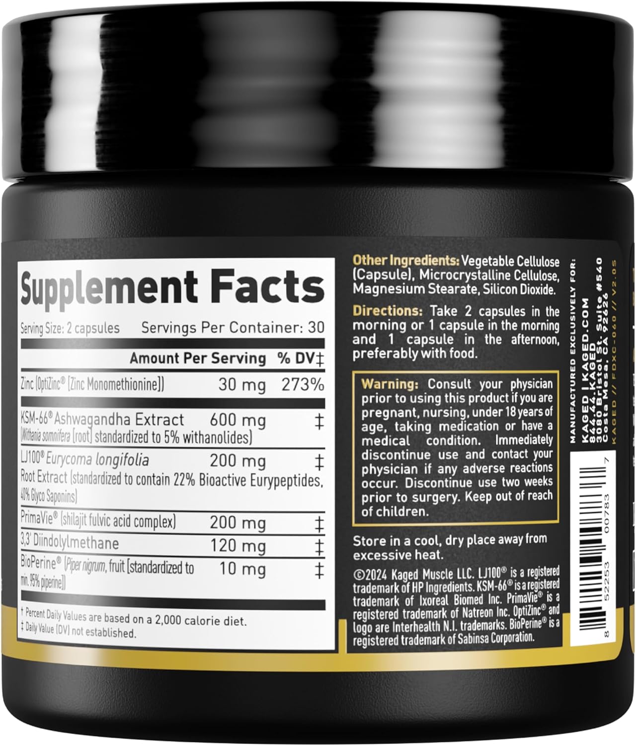 Kaged Test Capsules | Unflavored | Testosterone Booster Ferodrox | Premium Hormone Managment | LJ100 Tongkat Ali KSM-66 Ashwagandha Shilajit | Supplements for Men & Women | 60 Servings