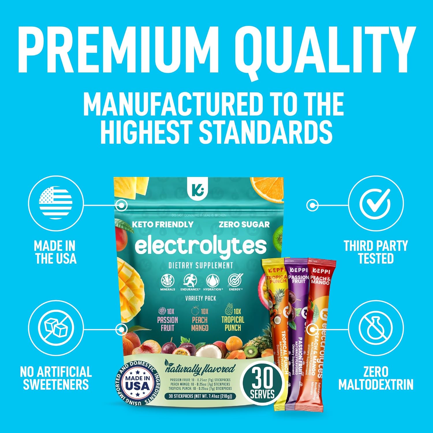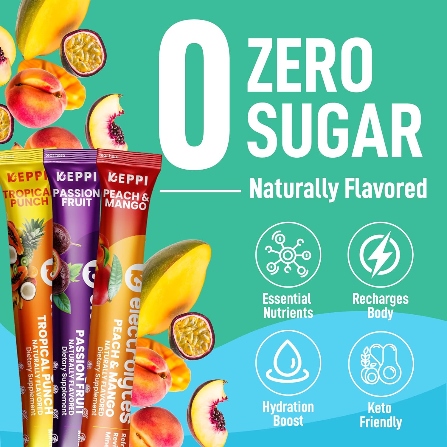 Keppi Electrolytes Powder Packets Assorted Tropical Flavors – Sugar Free Hydration Drink Mix with Potassium, Magnesium, Sodium – 30 Hydration Packets – Keto, Vegan, Fasting-Friendly, Zero Calorie