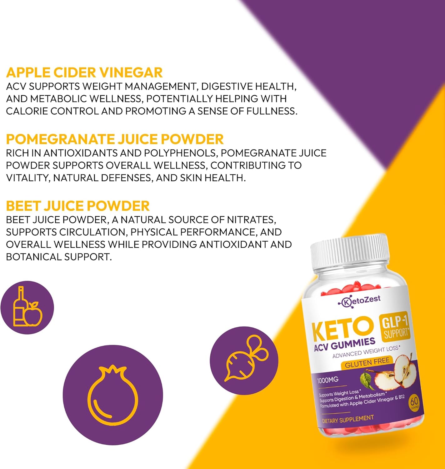 Formulated with Apple Cider Vinegar & B12: KetoZest weight loss gummies are specially formulated with apple cider vinegar and B12, two powerful ingredients known for their ability to boost metabolism and support weight loss. Get the benefits of these ingredients in a delicious and convenient gummy form.