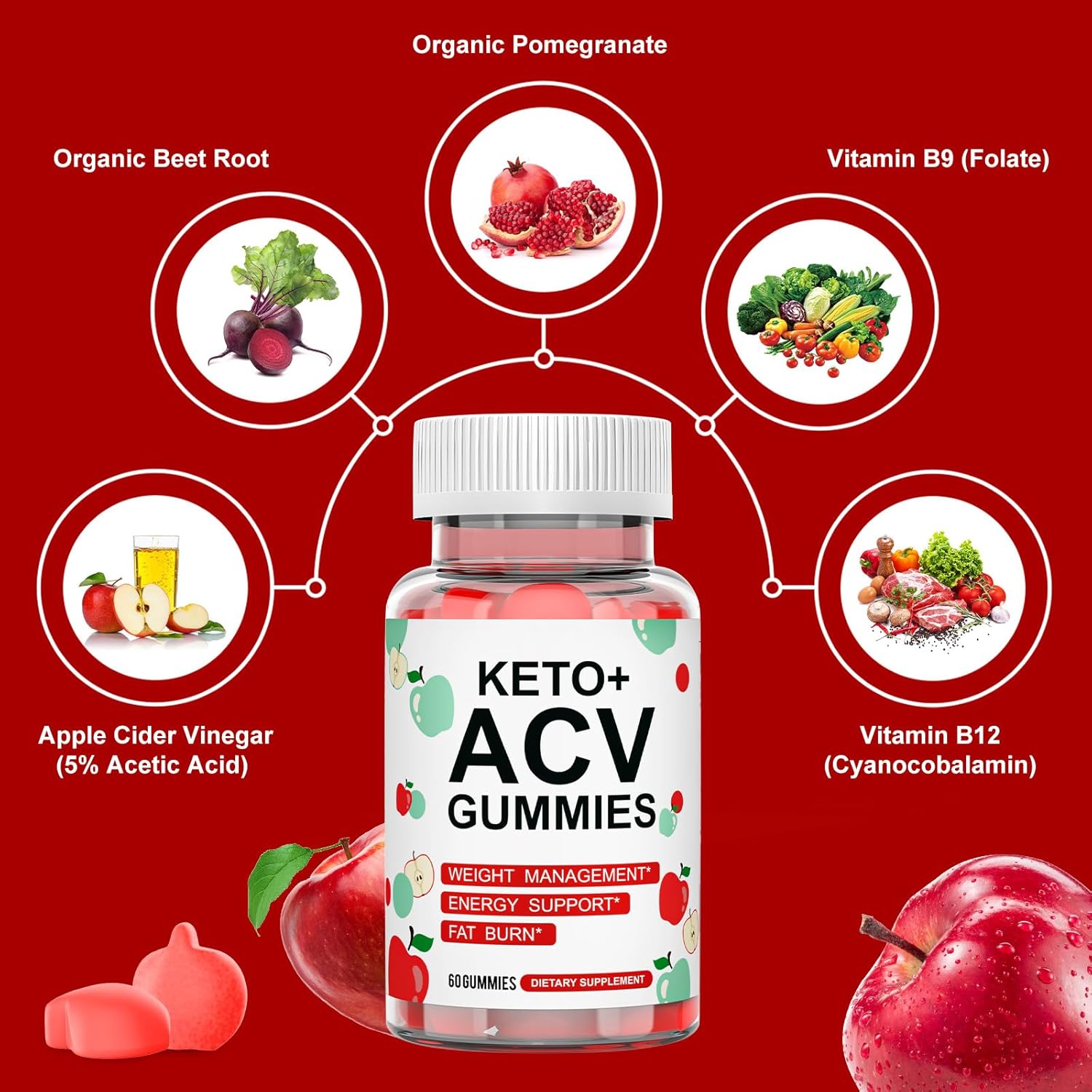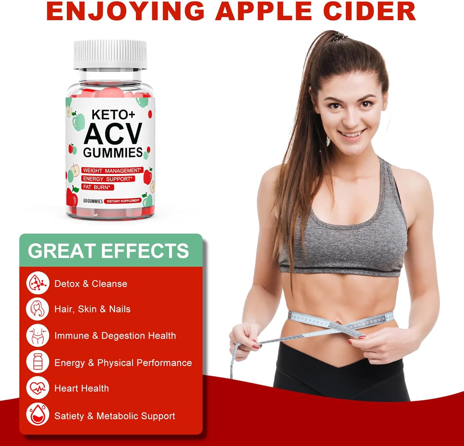 Keto ACV Gummies for Weight Loss, Apple Cider Vinegar Gummie for Rapid Fat Burning, Detox & Immune Support, Gluten-Free & Sugar-Free Gummies for Women & Men, 60 Count