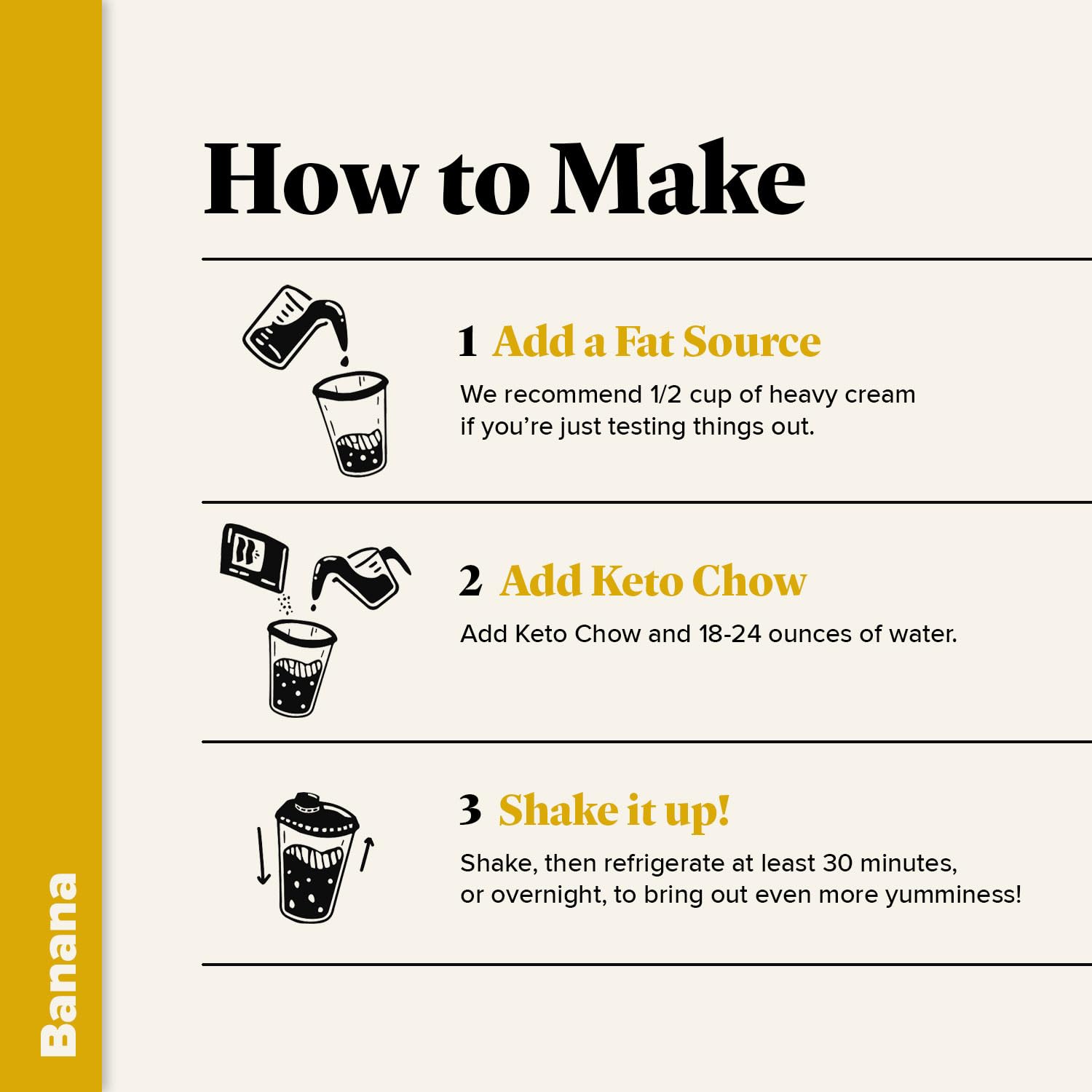 CUSTOMIZABLE: A requirement for nutritional ketosis is ensuring You’re Eating A High Fat Low Carb Diet; Keto Chow is convenient, easy, and customizable to your keto diet needs. Add your own fat source like avocado oil, heavy cream, or our personal favorite – melted butter. You pick your own adventure (calories) here!