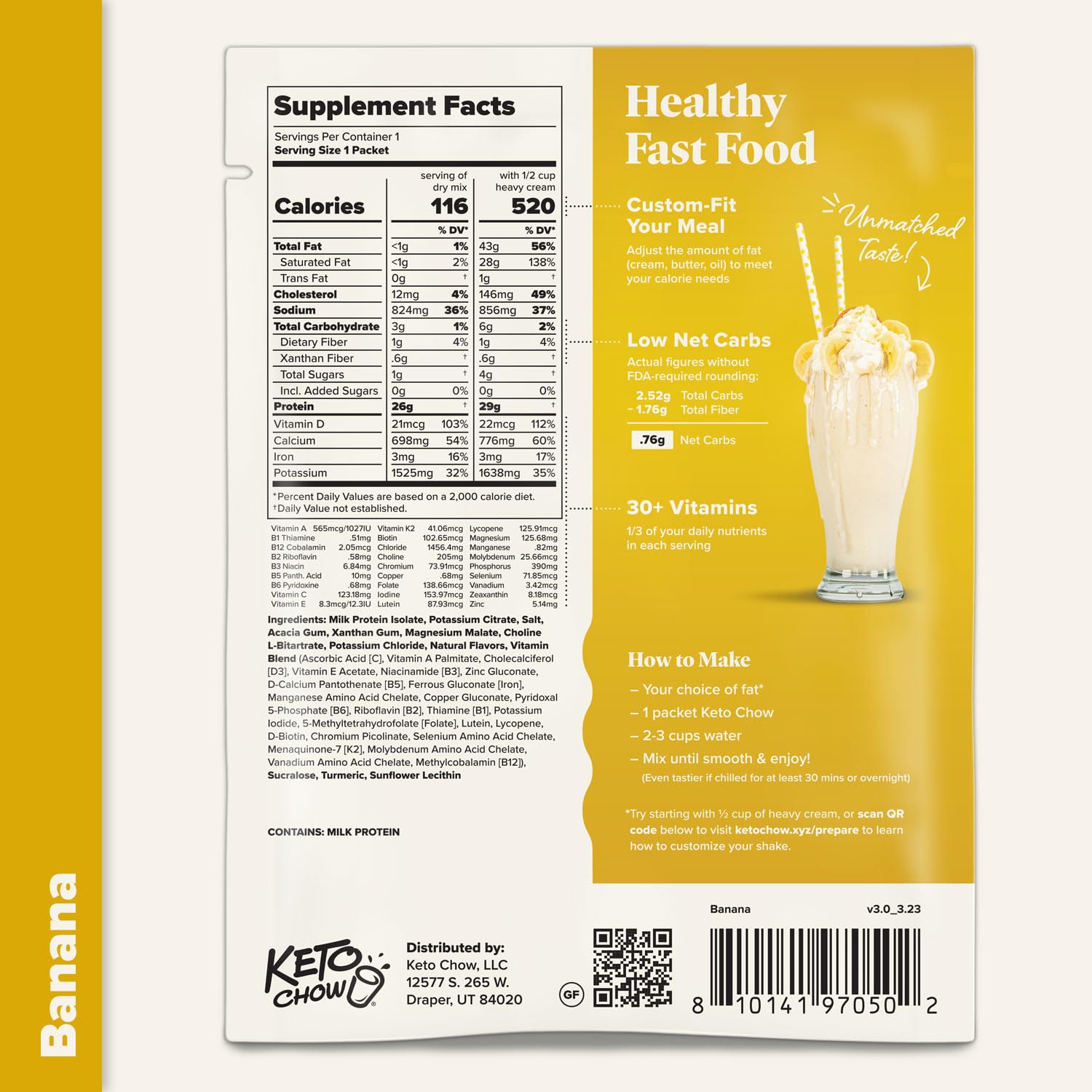 Keto Chow Banana – Keto Meal Replacement Shake Powder – Nutritionally Complete – Low Carb – Delicious Easy Meal Substitute – Protein Rich You Choose The Fat – Single Meal – 3 Pack