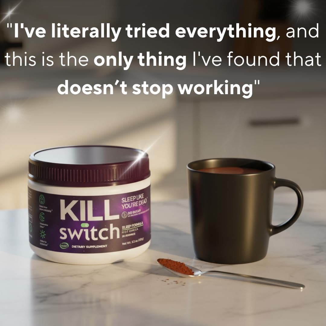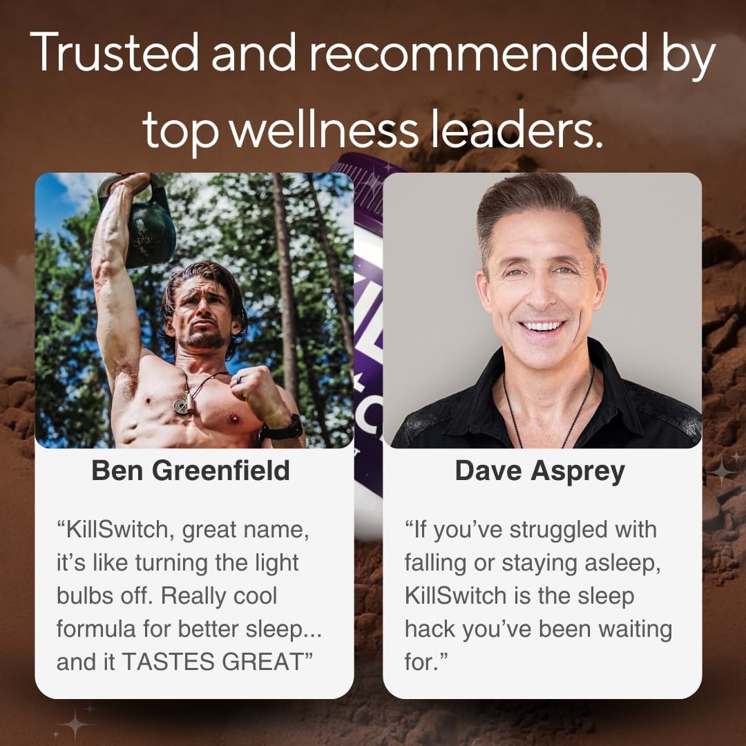 NATURAL TART CHERRY, NO SYNTHETIC MELATONIN: KillSwitch is your go-to sleep supplement powder, combining Tart Cherry Extract and natural compounds, without synthetic melatonin. A clean, effective option for those who want a magnesium sleep aid that fits into mindful wellness routines.