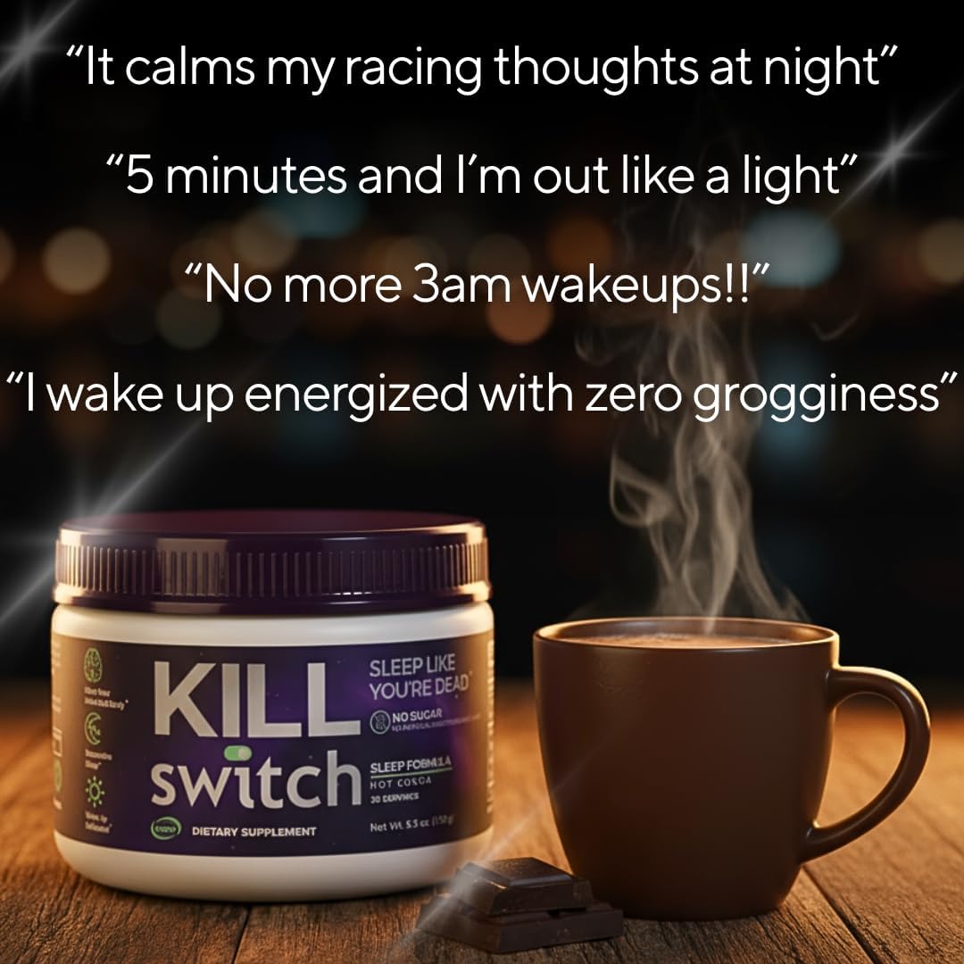 Killswitch Sleep Aid for Adults – Fall Asleep Fast & Wake Refreshed, Sugar-Free Hot Chocolate Supplement – Magnesium, Tart Cherry, L-Theanine & More for Restful Sleep, 30 Servings, Made in USA