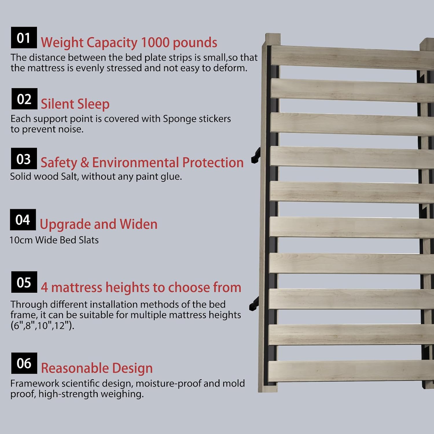 Versatile Mattress Compatibility: This platform bed is designed to accommodate multiple heights of mattresses. Whether you prefer a 6″, 8″, 10″, or 12″ mattress, this bed frame is suitable for your specific needs.