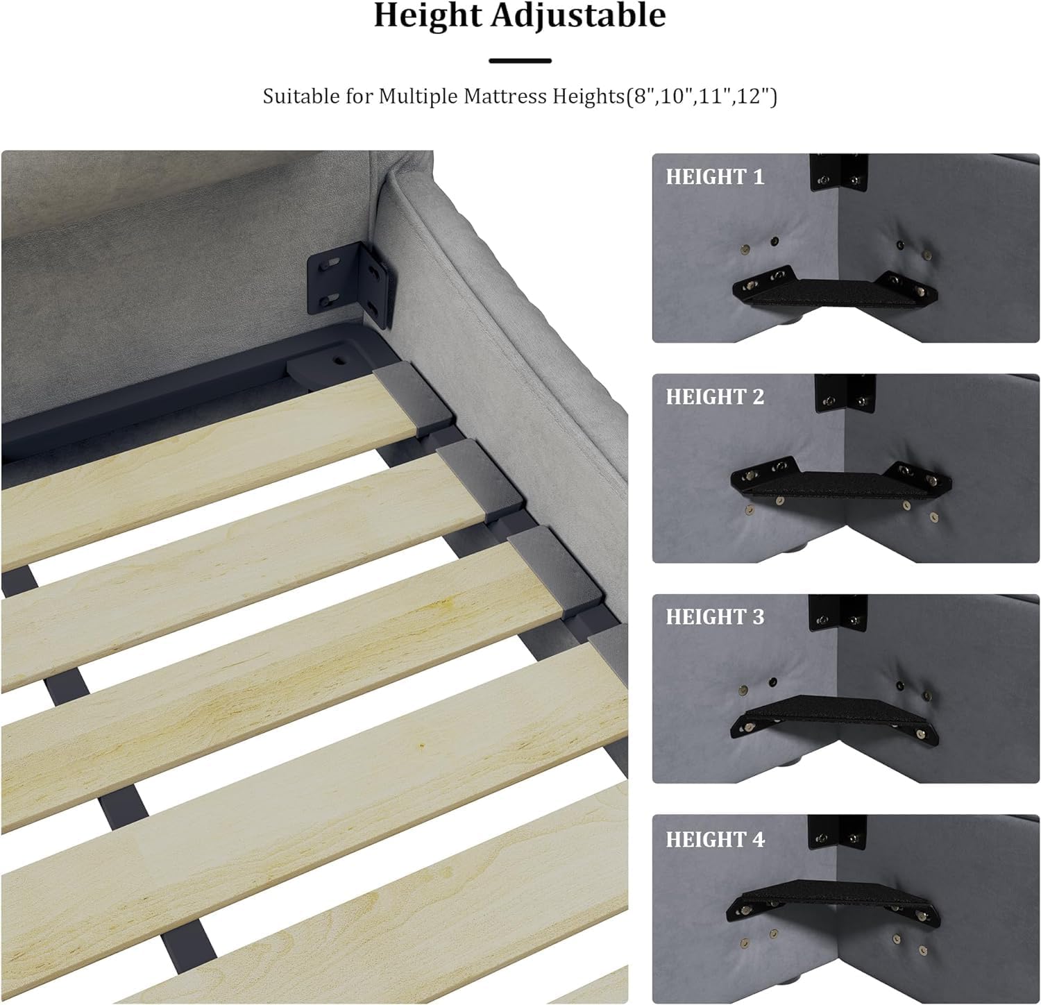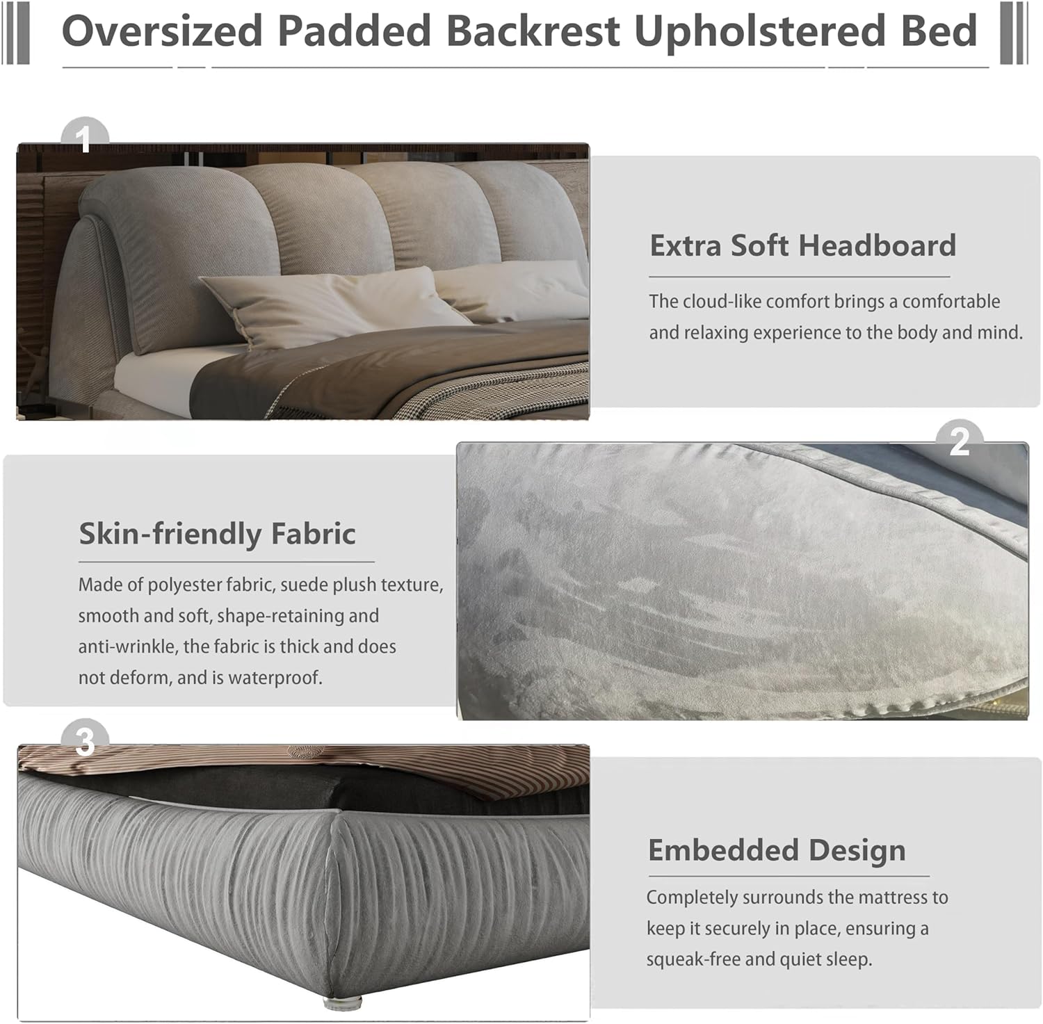 Stylish Upholstered Headboard: The oversized padded backrest adds a touch of luxury to this bed frame. The fully upholstered headboard is not only aesthetically pleasing but also provides added comfort and support.