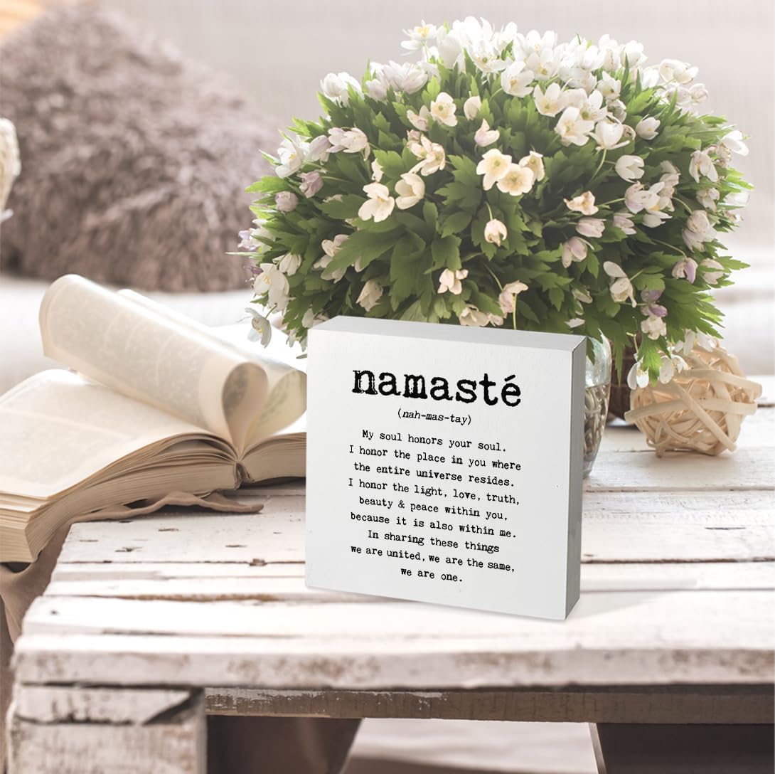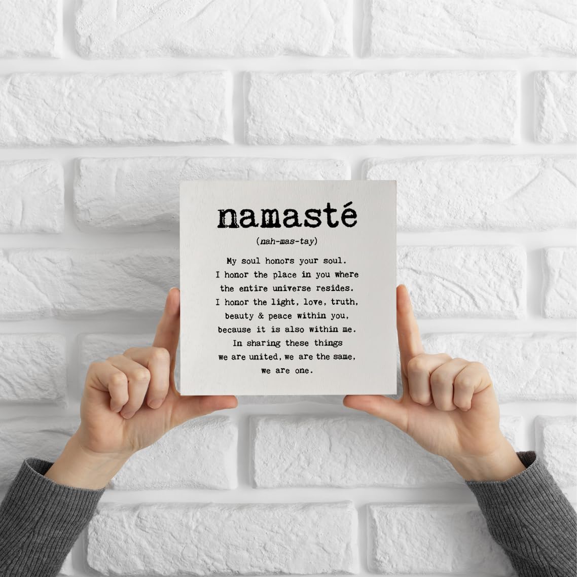 Knibeo Namaste Wooden Box Sign – Yoga and Meditation Room Decor, 5×5 Wall Art, Spiritual Decor
