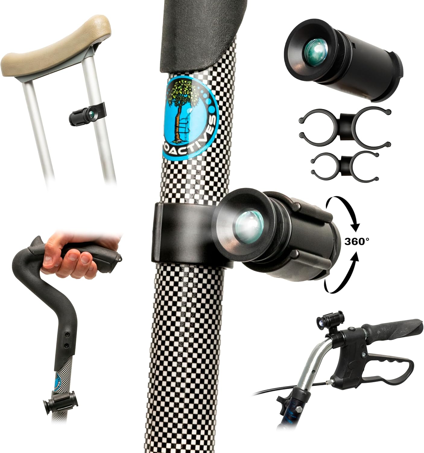 LightBaum 2G- New Improved Adjustable LED Flashlight for Crutches, Canes, & Walkers, Helps Prevent Falls During Dark Hours, Perfect Illumination Allows Users To See At Night (Universal tube mount)
