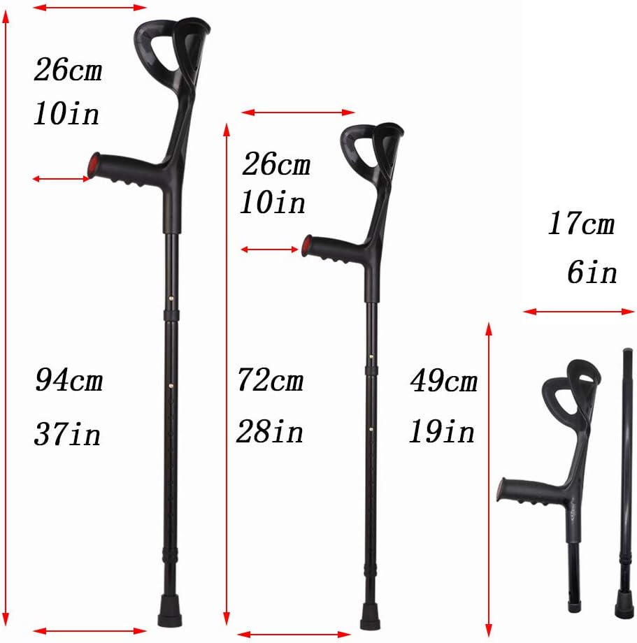 Lightweight Foldable Forearm Crutch, Aluminum Walking Stick,Height Adjustable, Ergonomic Handle with Comfortable Grip 2ZG-02BM (Black)