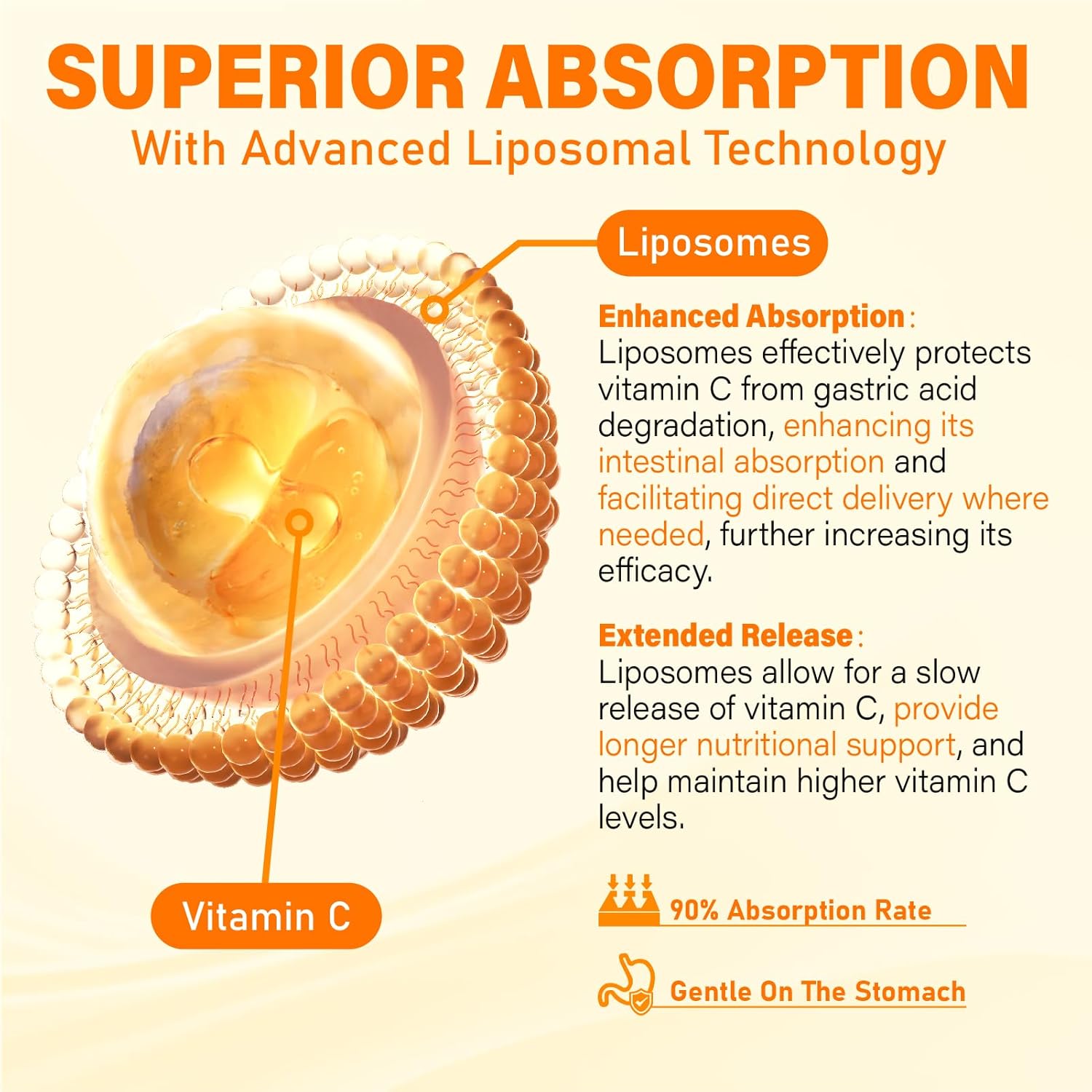 ENHANCED ABSORPTION WITH LIPOSOMAL & FILLED TECHNOLOGY: Our liposomal vitamin c gummies use phospholipid blend from sunflower and lecithin to create liposomes that effectively deliver vitamin C directly. This process prevents vitamin C oxidation, maximizing absorption & bioavailability while is gentle on the stomach. Filled technology encapsulates nutrients in the center of gummy, protecting them from air & heat, resulting in a 5X MORE ABSORPTION than standard gummies.