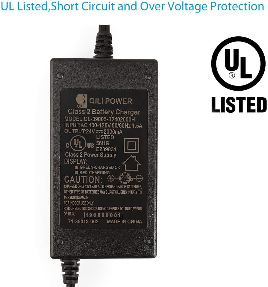 LotFancy 24V 2A Battery Charger for Electric Scooter, Wheelchairs, for Jazzy Power Chair, Pride Mobility, Shoprider, Drive Medical, Bladez, Elite Traveller