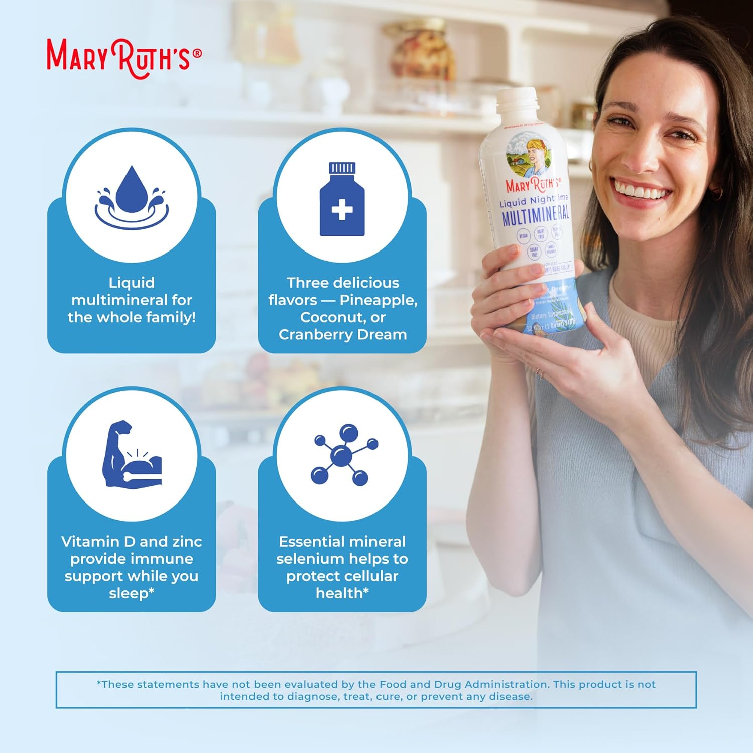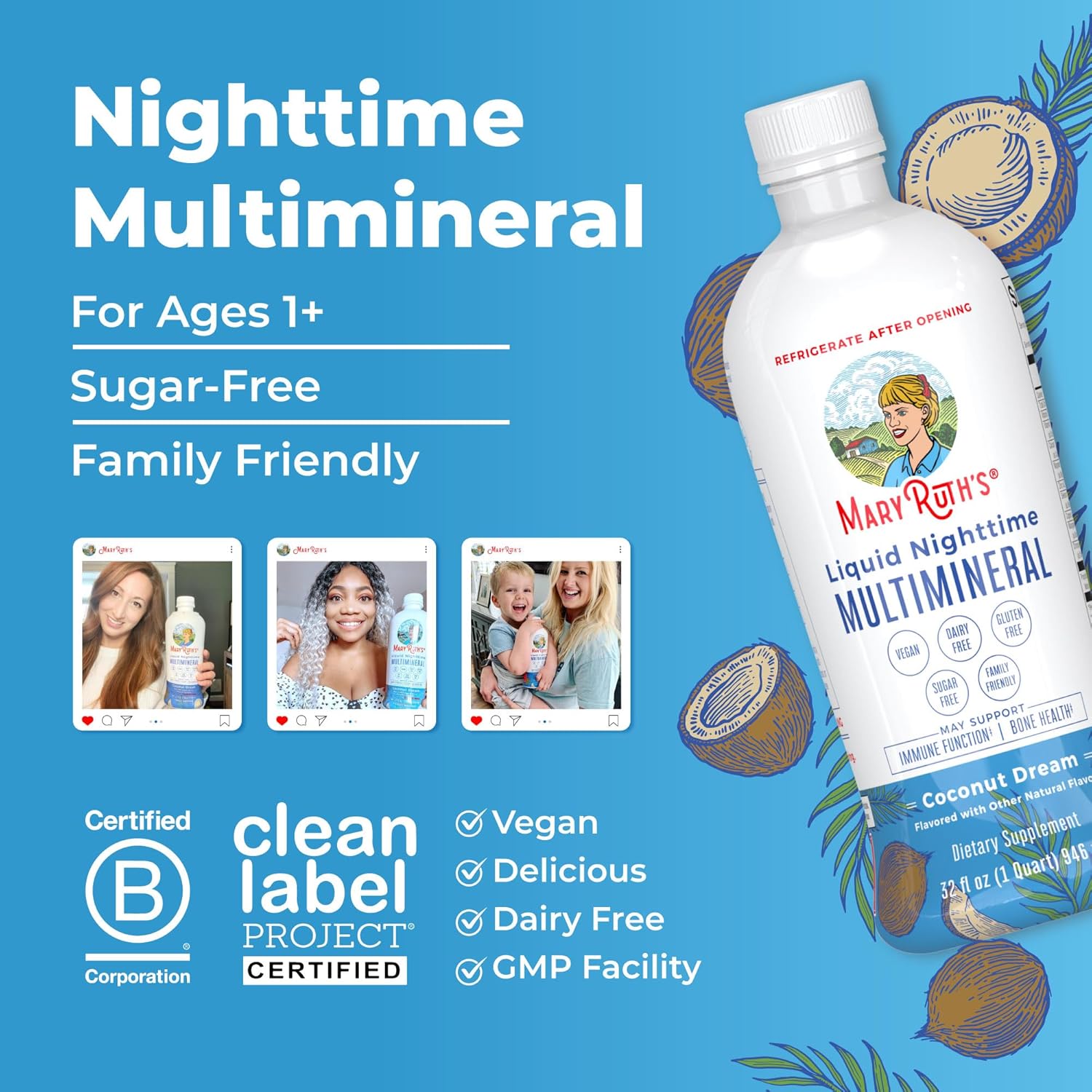 MaryRuth Organics Liquid Nighttime Multimineral | No Melatonin | Bedtime Routine | Magnesium Citrate | Calcium | Zinc | Vitamin D3| Available in 4 Flavors – Vegan | Sugar Free | Gluten Free | 32 Oz