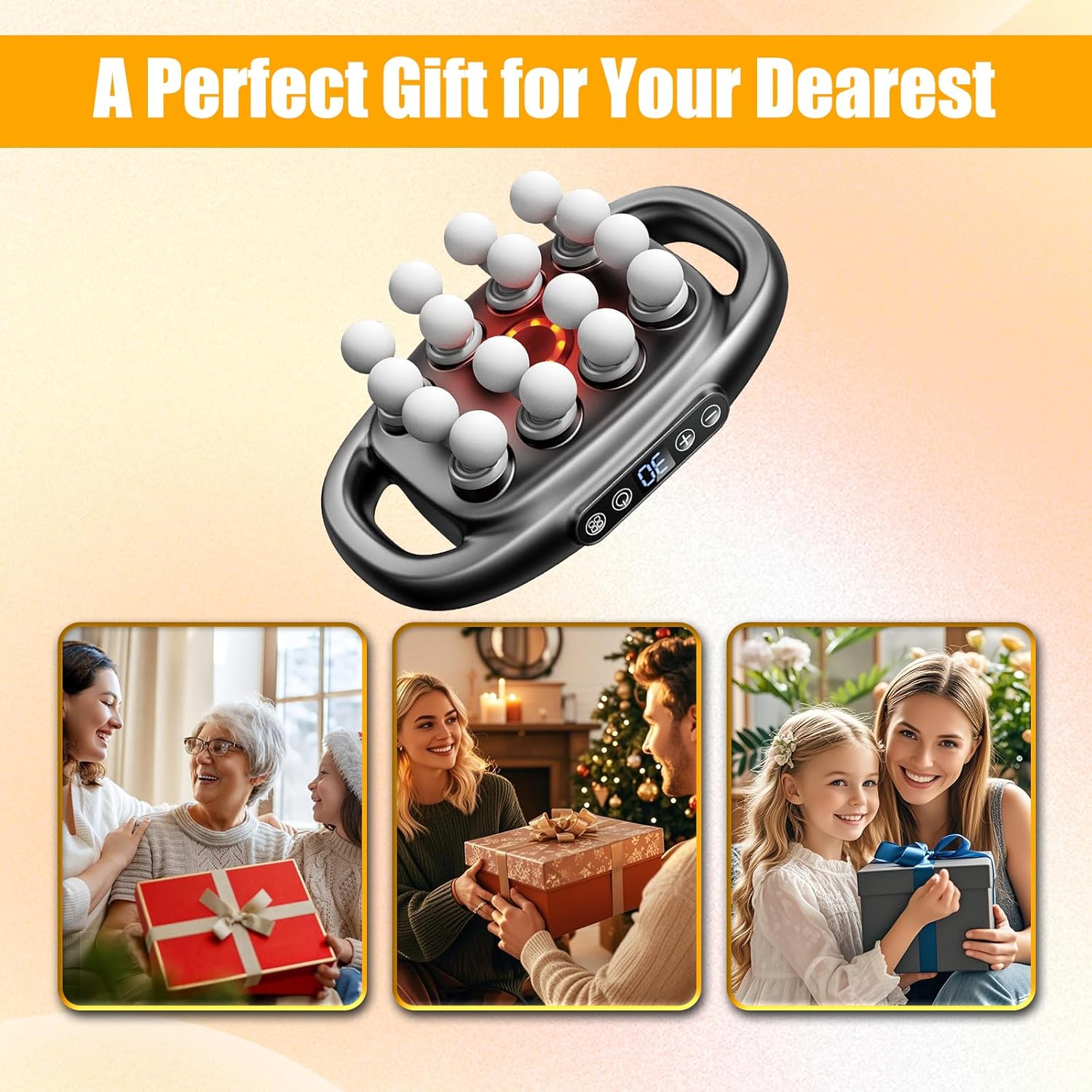 Massage Gun Deep Tissue with16 Heads-Muscle & Back Relief Massager with 30 Speeds, Red Light Therapy, Handheld Percussion for Pain Relief