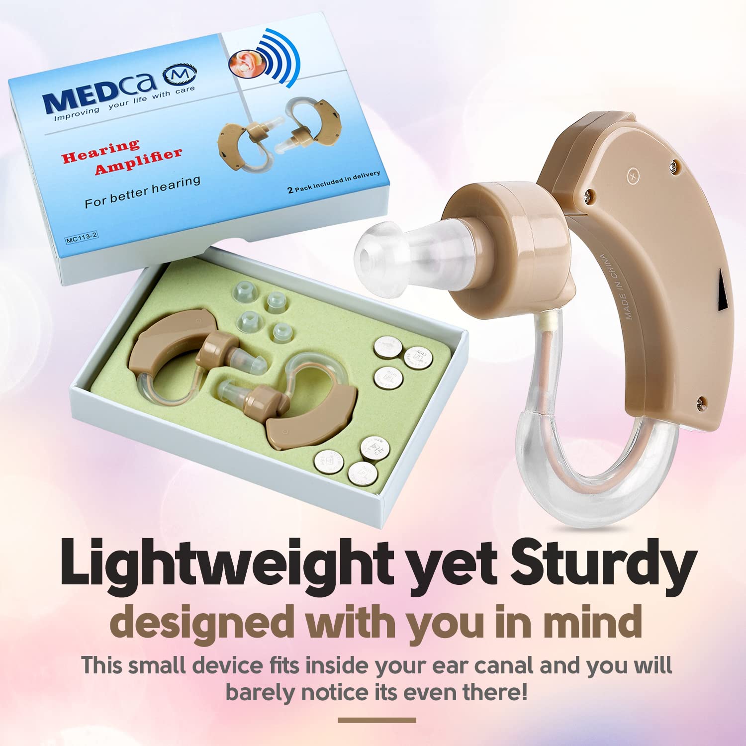 MEDca BTE Hearing Aids for Seniors – Behind the Ear Sound Amplifier Super Mini Size Sound Enhancer For Better Hearing (Pair)