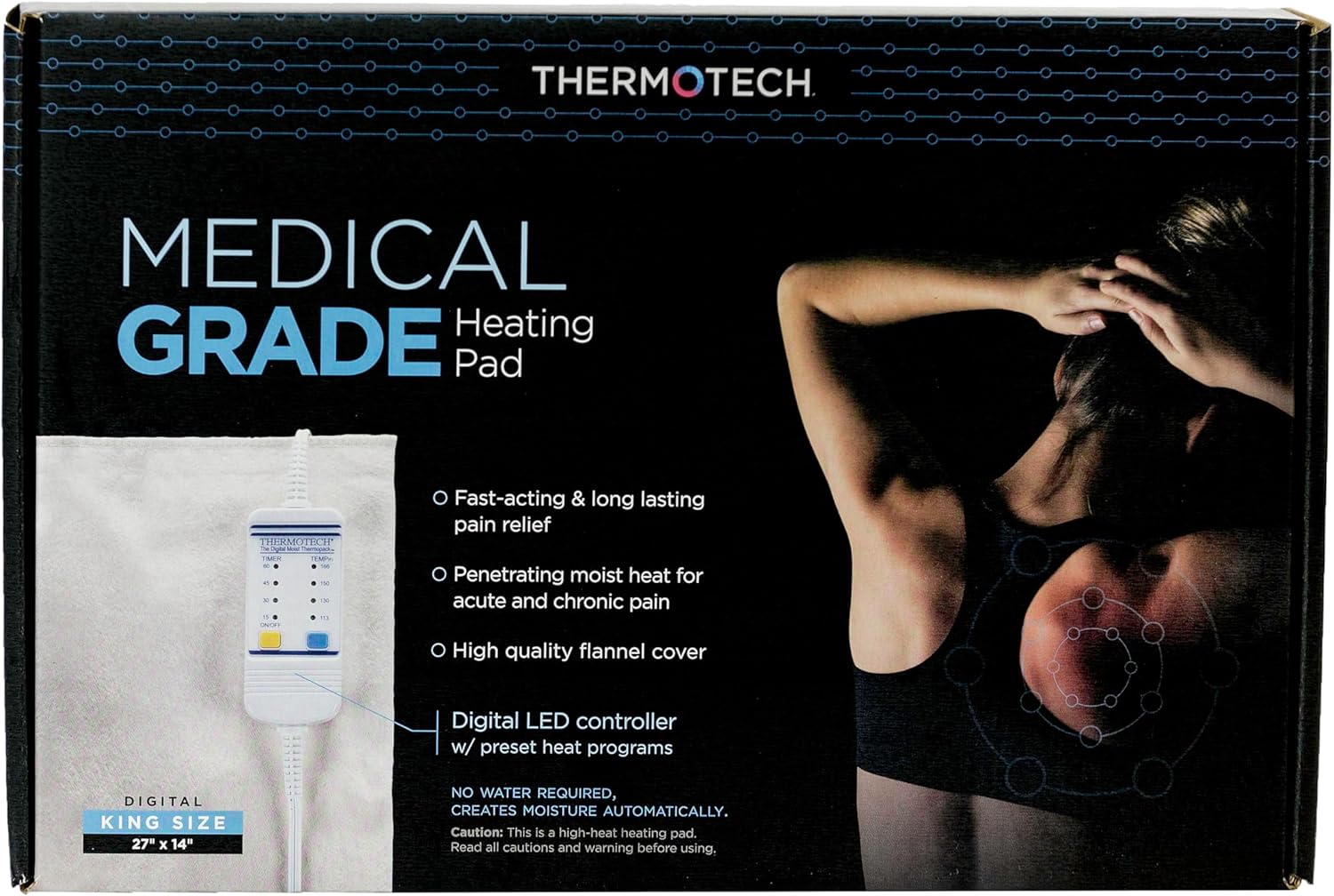 Medical Grade Heating pad with Automatic Moist Heat by Thermotech, High Heat Heating pad for Back Pain and Cramps – 2nd Gen Version (Extra Large King Digital – 26″ by 14″)