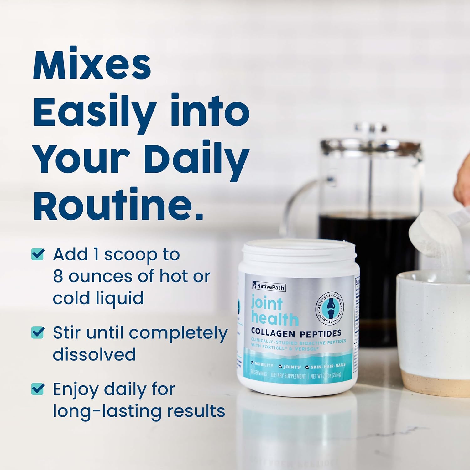 NativePath Joint Health Advanced Formula, Type 1 & 3 Peptides with Fortigel & Verisol, Grass-Fed Unflavored Collagen for Women & Men, 30 Servings