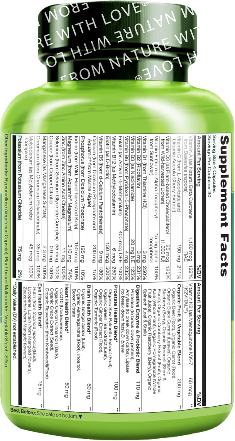 COMPLETE MULTIVITAMIN FOR MEN: The Naturelo Whole Food Multivitamin for men, a renowned multi vitamins option, is formulated with a blend of organic fruits and vegetables along with essential vitamins and minerals to support health and wellbeing.*
