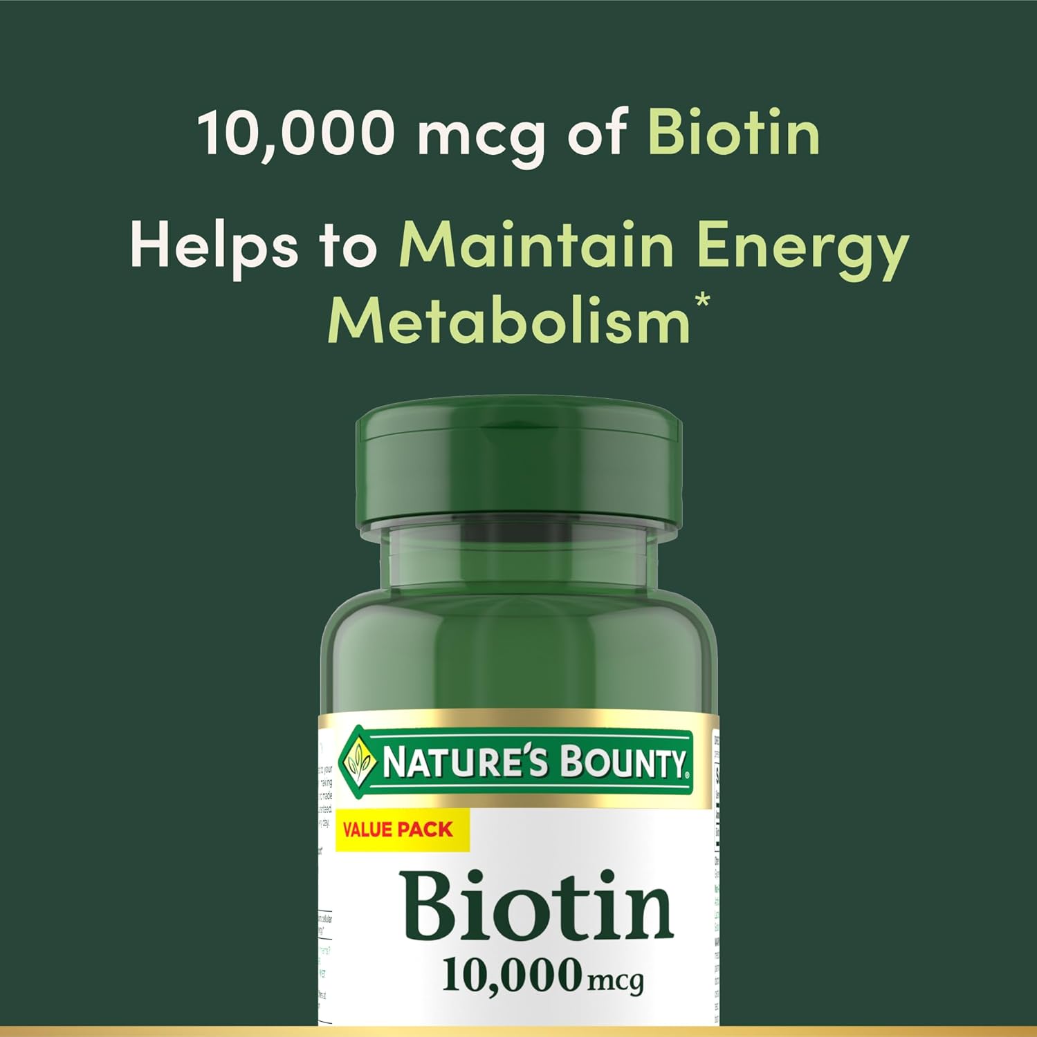 Nature’s Bounty Biotin Hair Skin and Nails Vitamins, Supports Healthy Hair, Skin and Nails, 10,000 mcg, Rapid Release Softgels, 180 Ct