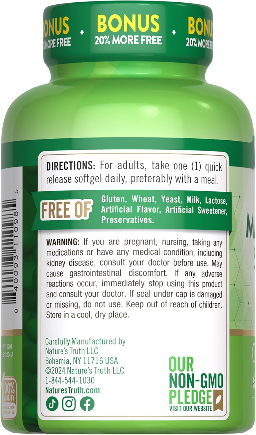 Nature’s Truth Magnesium | 400mg | 72 Softgels | Value Size | Extra Strength | from Magnesium Oxide | Non-GMO and Gluten Free Supplement