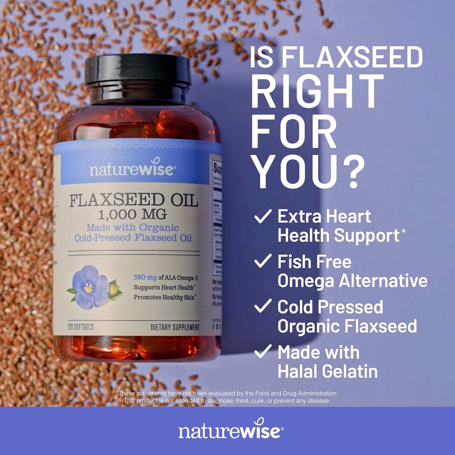 Be the first to review “NatureWise Flaxseed Oil 1000 mg, Fish Free Omega 3 with 580 mg ALA, Dietary Supplement for Immune Health Support – Organic, Cold Pressed, Non-GMO – 120 Softgels[120-Day Supply]”