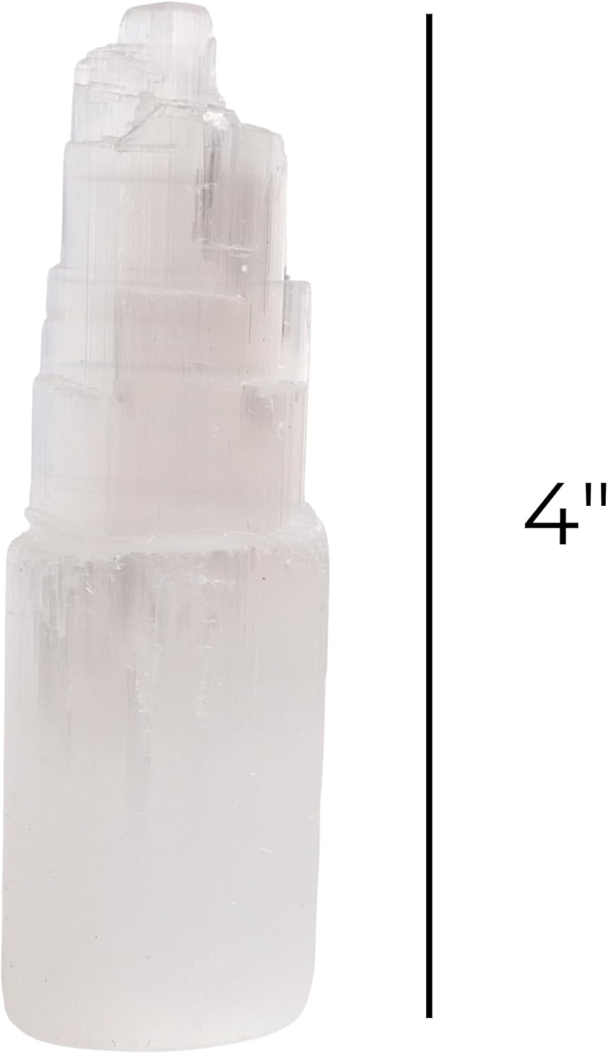 Needzo Small Selenite Skyscraper Statue, Yoga and Meditation Accessories, Spiritual Gifts for Women, 4 Inches Tall (Pack of 3)