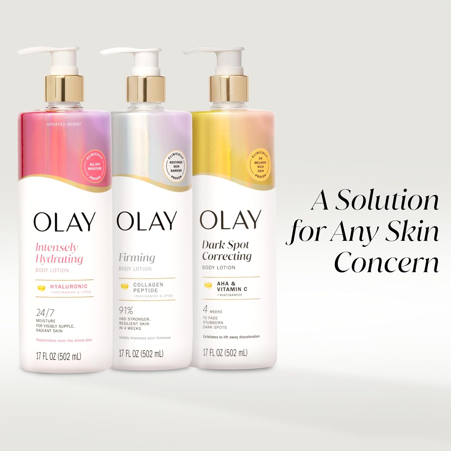 Olay Body Lotion for Women, Nourishing with Hyaluronic Acid Serum, Visibly Soften & Smooth Skin, 24hr Moisture & Hydration, Fast Absorbing Formula, Vitamin B3 Complex, For All Skin Types, 17 fl oz