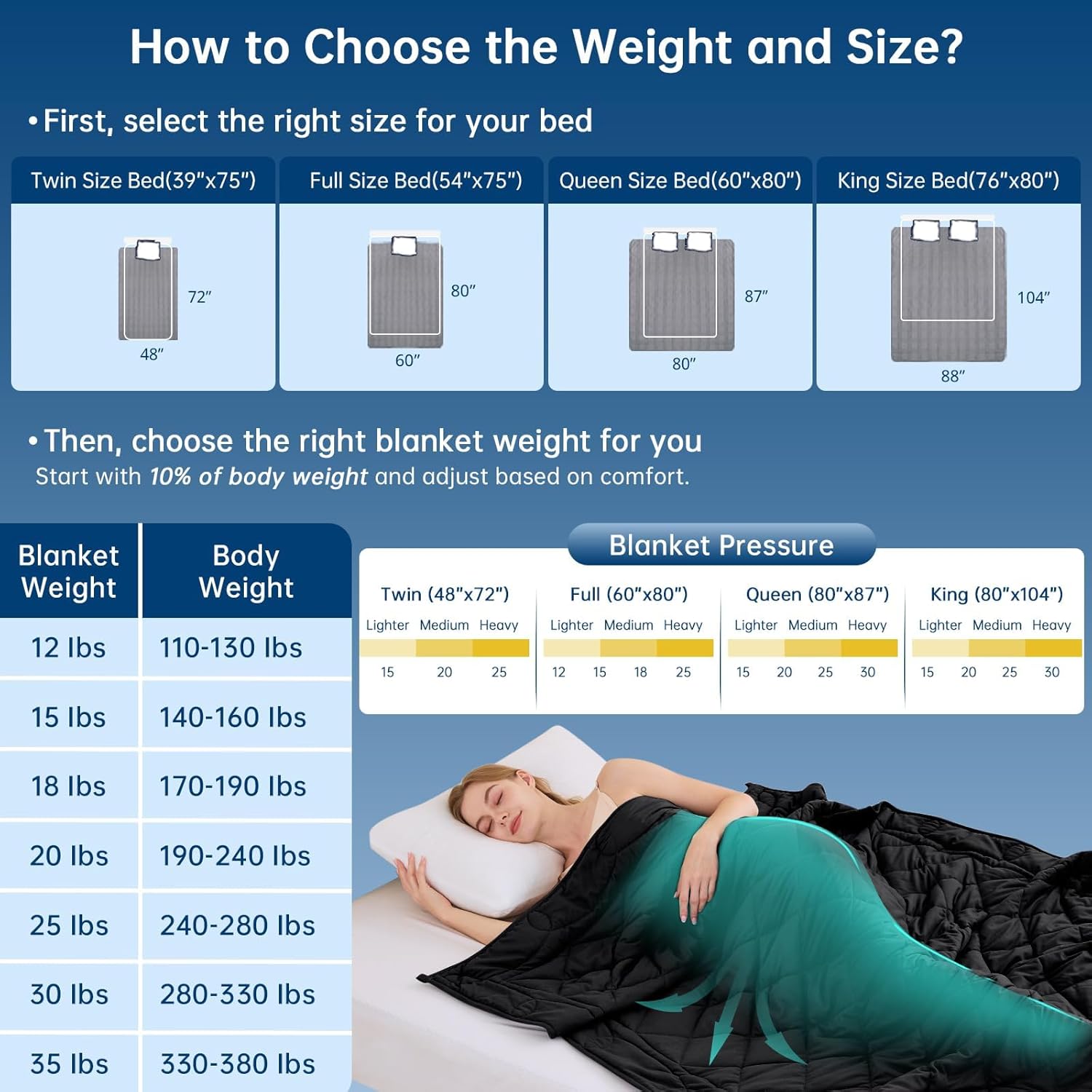 Personalized Comfort Fit: The cooling weighted blanket is available in multiple weight options ranging from 12 to 35 pounds. Choose a weighted blanket around 10% of your body weight for optimal comfort — start lighter if needed, adjust within 3-31 days, and unlock deeper sleep