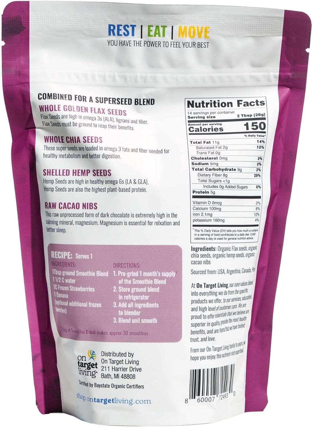 On Target Living Smoothie Blend- 14 oz | Real Nutrition from The Source | Flax, Chia, Hemp, Cacao |