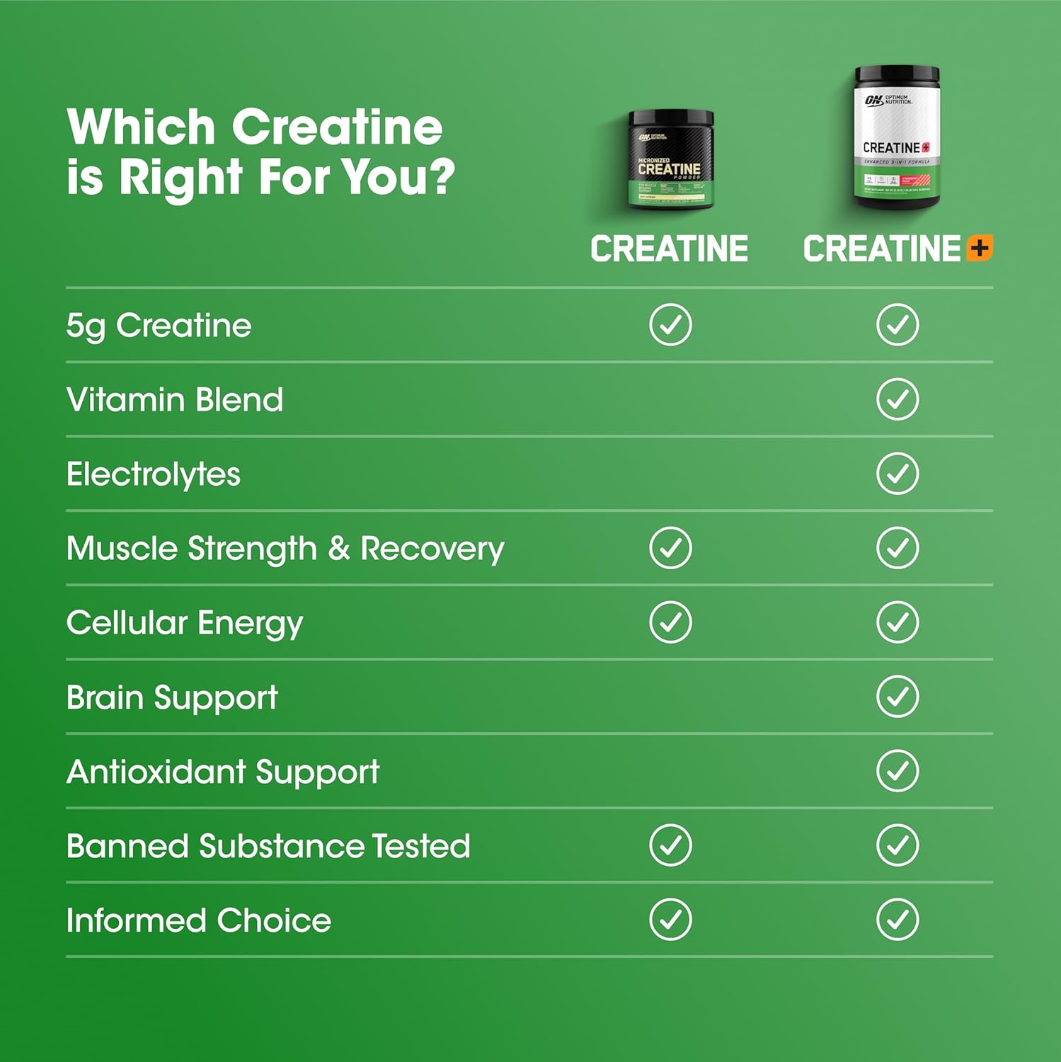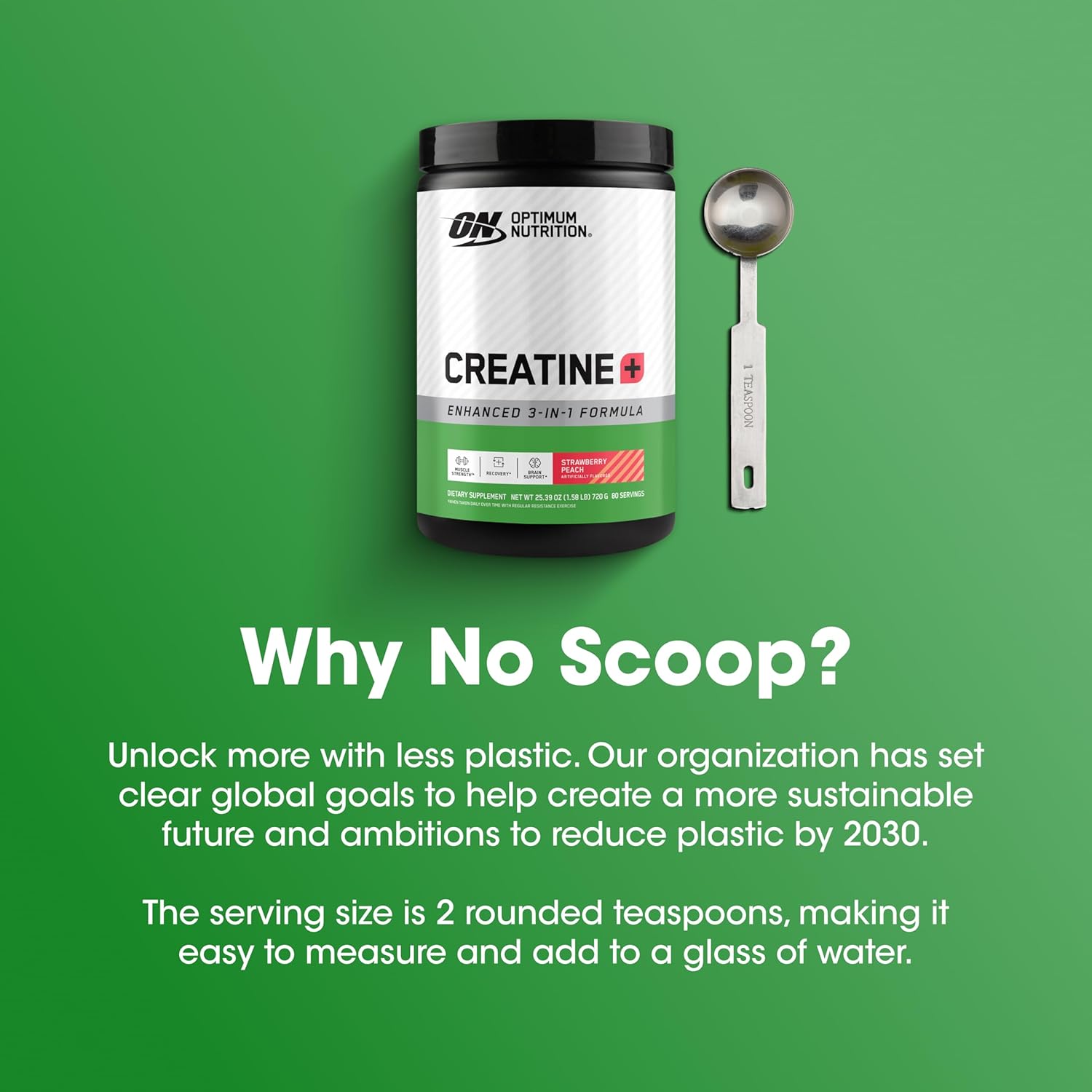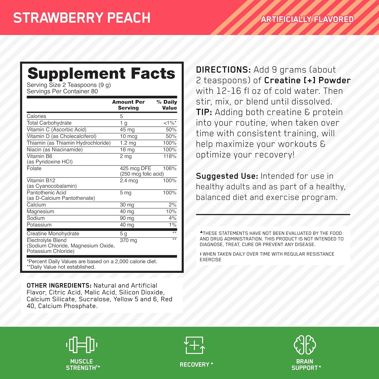 Optimum Nutrition Creatine Monohydrate Plus Powder, Strawberry Peach Flavored Creatine Performance Blend, with Electrolytes for Hydration, Added Vitamins, 80 Servings, 720 Grams (Packaging May Vary)