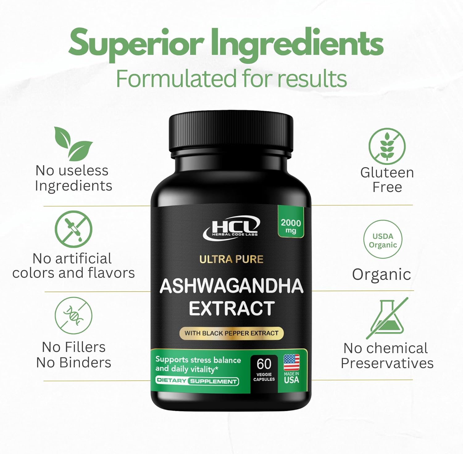 This powerful bundle combines two premium organic supplements to support your wellness routine naturally. Each serving of Herbal Code Labs Spirulina Chlorella capsules delivers 3000 mg of nutrient-dense blue-green algae, rich in vegan protein, vitamins, minerals, and chlorophyll. It’s a natural green superfood blend for daily detox and vitality. Paired with HCL Ashwagandha capsules (2000 mg per serving), this adaptogenic herb is traditionally used to help the body manage stress. Enhanced with Lemon Balm and Black Pepper Extract for better absorption and mood support, this combination is designed to help you feel energized and balanced. All ingredients are plant-based, made in the USA, and third-party tested for purity. No fillers, preservatives, or GMOs, just natural support in easy-to-swallow vegetarian capsules.