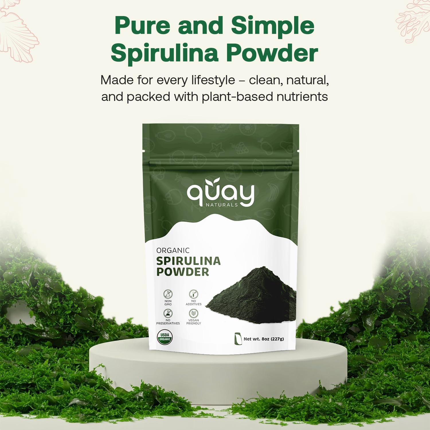 Organic Spirulina Powder 8oz, Non-GMO, Gluten-Free, Vegan, Plant-Based Protein, Iron-Rich, Spirulina Powder for Smoothies