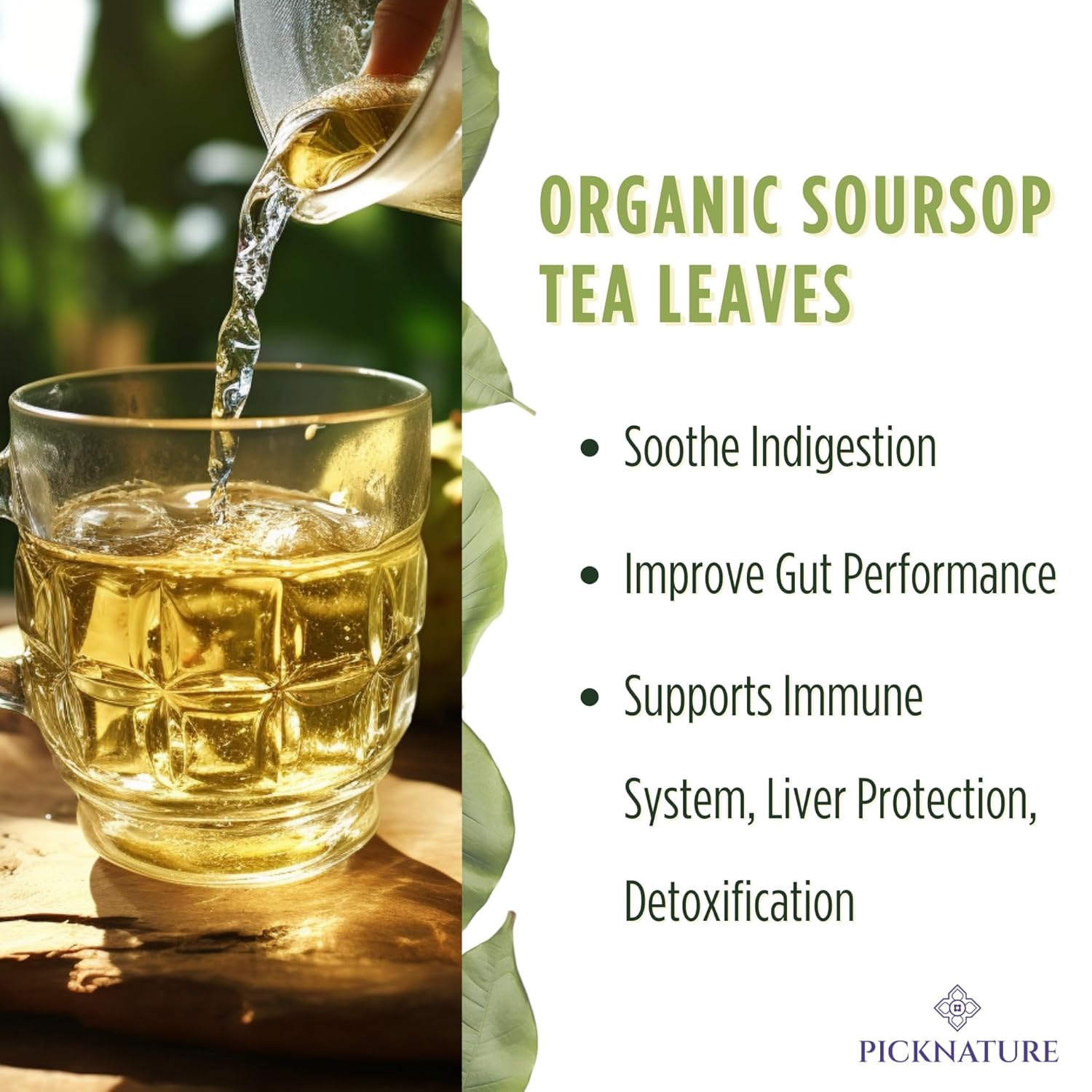 PICKNATURE Organic Dried Soursop Leaves | Antioxidant Herbal Tea, Caffeine-Free | Supports Digestion, Immunity & Detox | 1.76oz (100+ Cups)