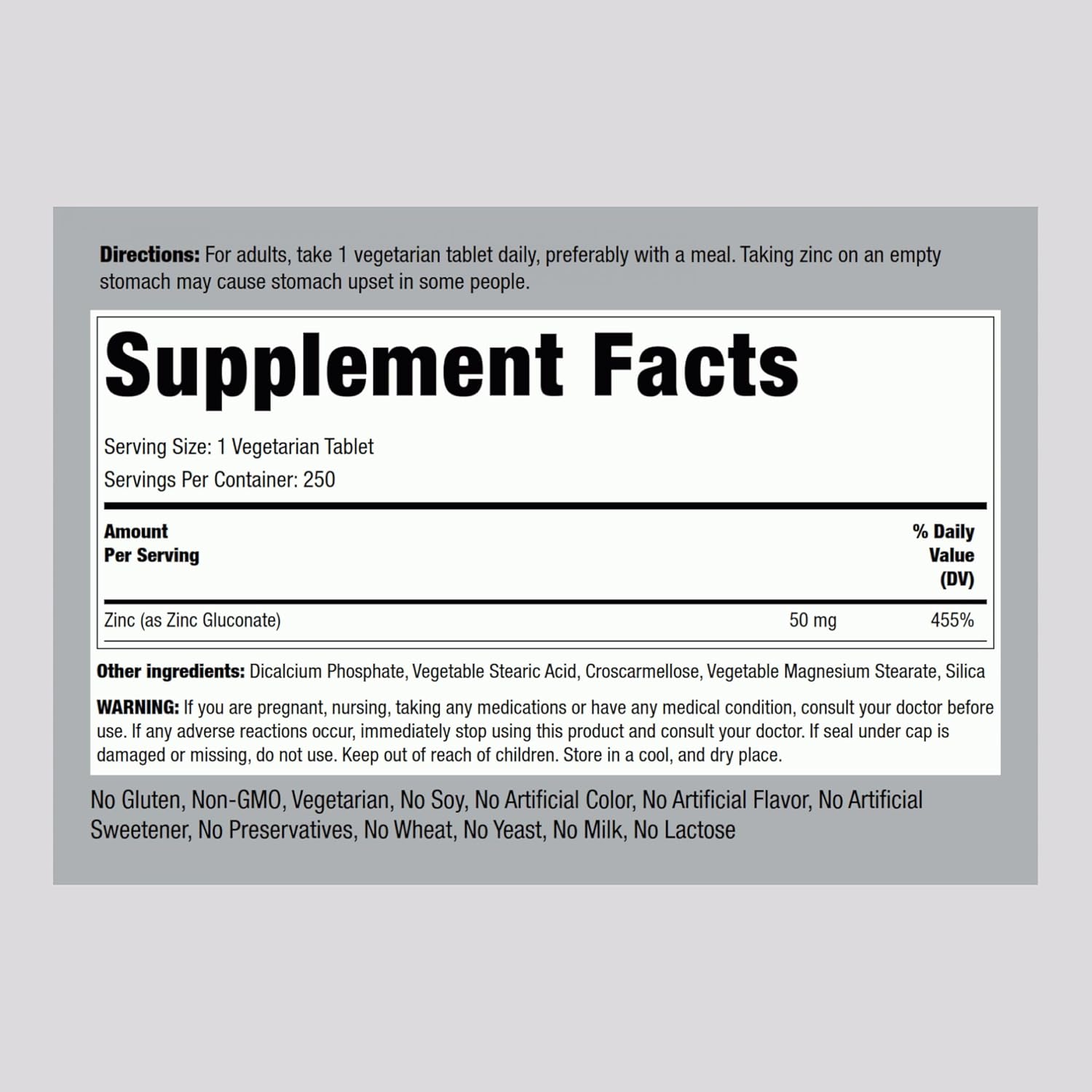 Piping Rock Chelated Zinc Supplement 50 mg | 250 Tablets | Gluconate | Vegetarian, Non-GMO, Gluten Free